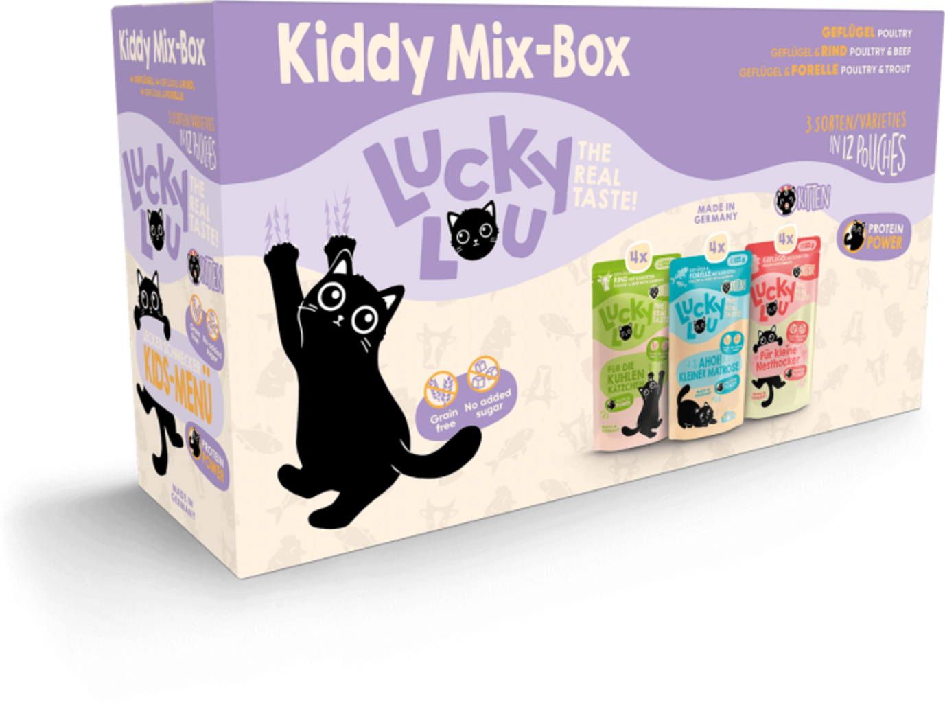 avis en français à propos du produit Lucky Lou Alimentation humide Lifestage Kitten Coffret Mix