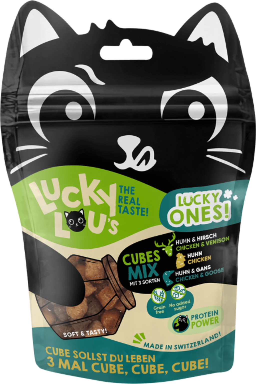 Ces cubes charnus ne laisseront aucun cœur de chat indifférent, car ils contiennent de nombreux ingrédients adaptés aux chats, au goût tout simplement irrésistible. Que ce soit comme snack de qualité entre les repas, comme récompense ou caché dans un jouet pour chat, avec les délicieux Lucky Ones Cubes, vous pouvez faire plaisir à votre chat.