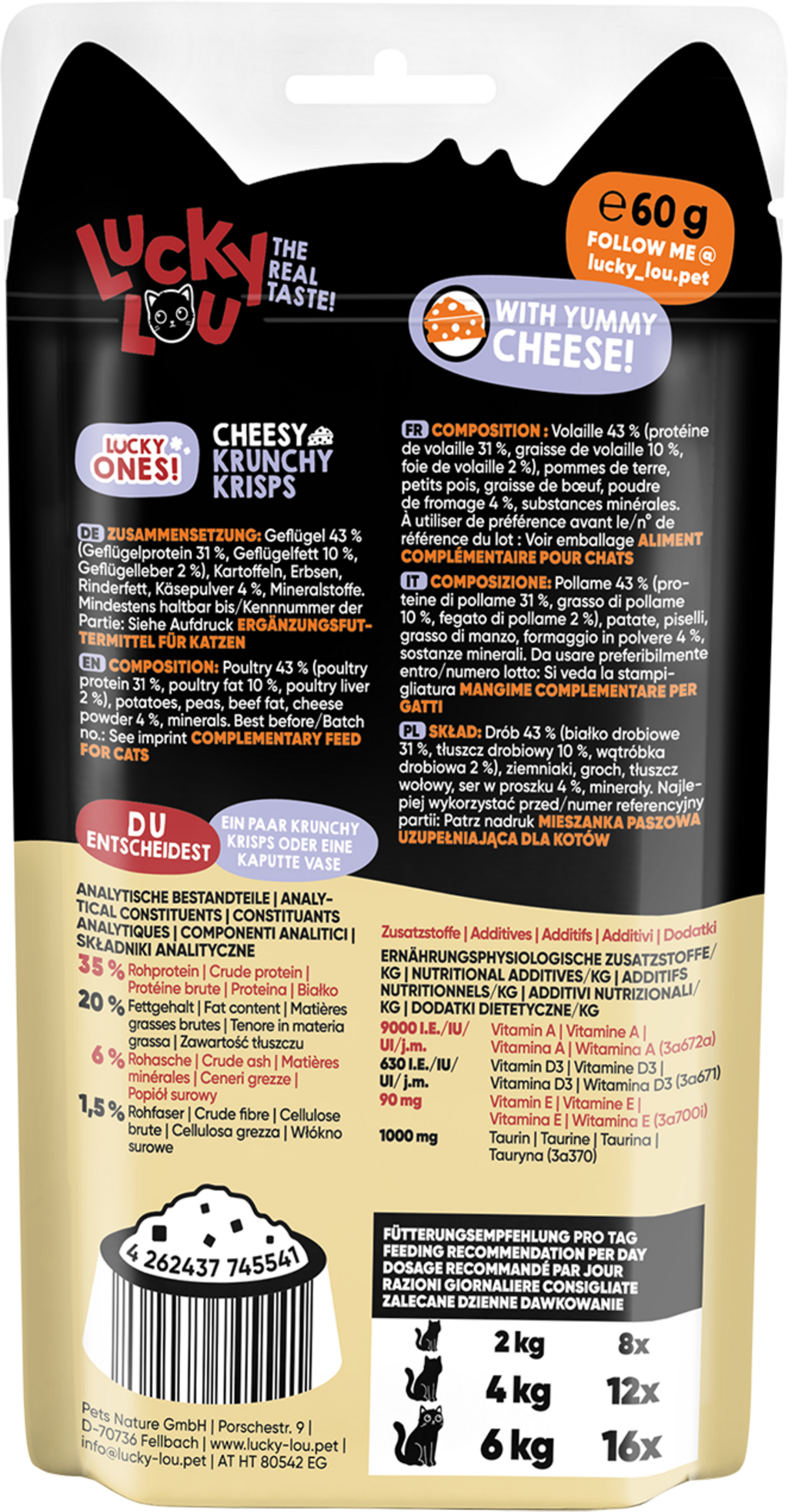 Lucky Lou Friandises Krunchy Krisps Lucky Ones - Poulet & Fromage, 60 g