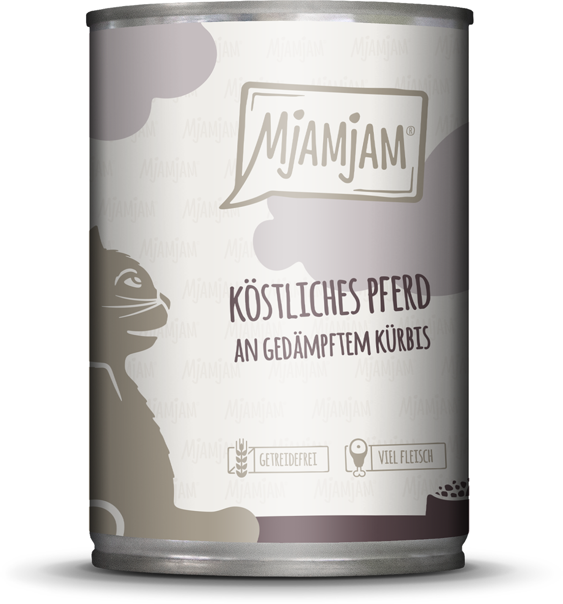 La nourriture humide de Mjamjam offre à votre chat une saveur riche, une qualité incomparable et une touche d’amour. Votre animal de compagnie profite d’un repas complet composé d’une généreuse quantité de viande de cheval et de courge cuite à la vapeur.