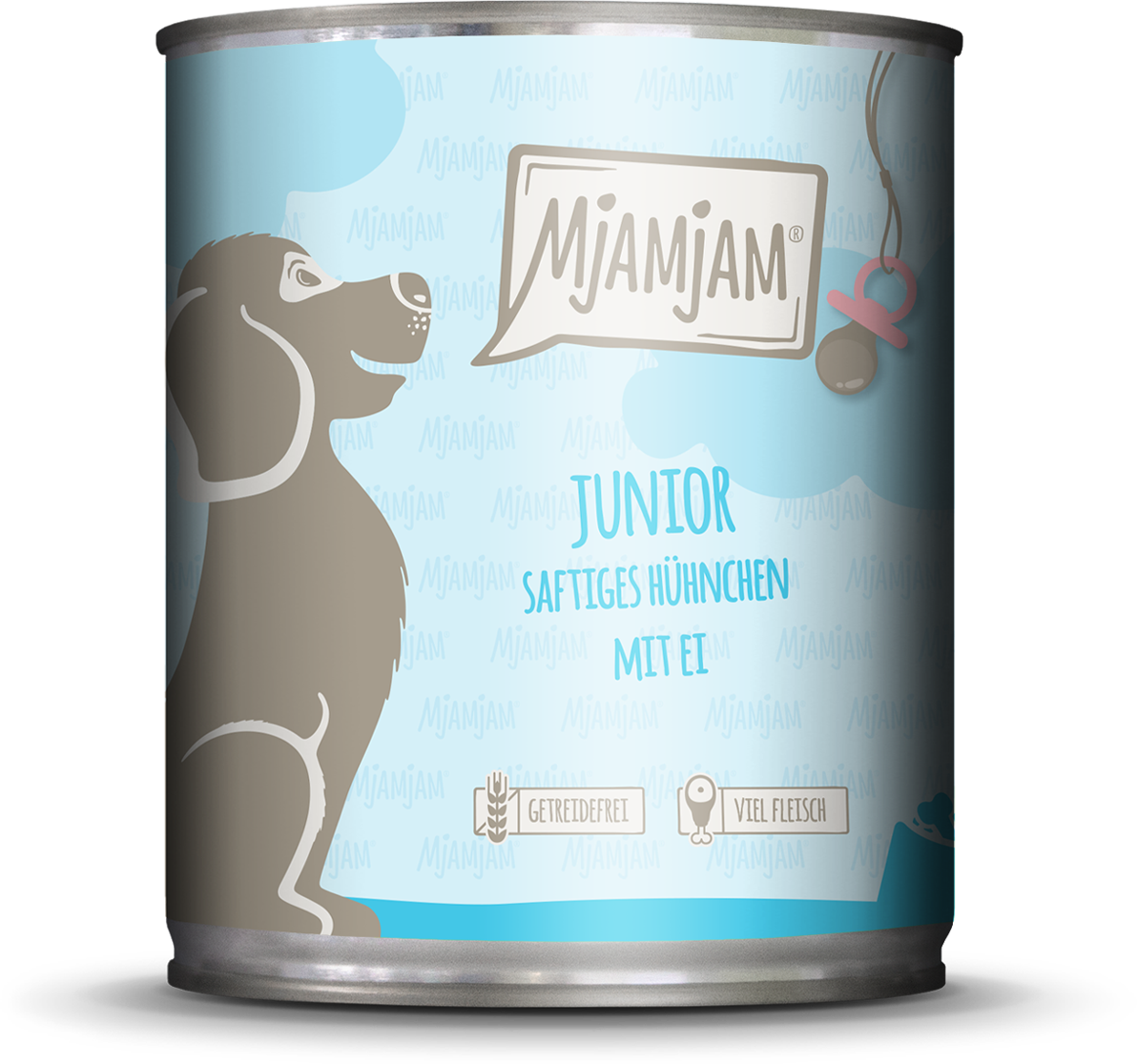 La nourriture humide de Mjamjam offre à votre chiot une saveur riche, une qualité incomparable et une touche d’amour. Votre jeune animal de compagnie profite d’un repas complet composé de viande de poulet fraîche et d’œuf savoureux. La recette contient tout ce qu’il faut pour répondre pleinement à ses besoins.