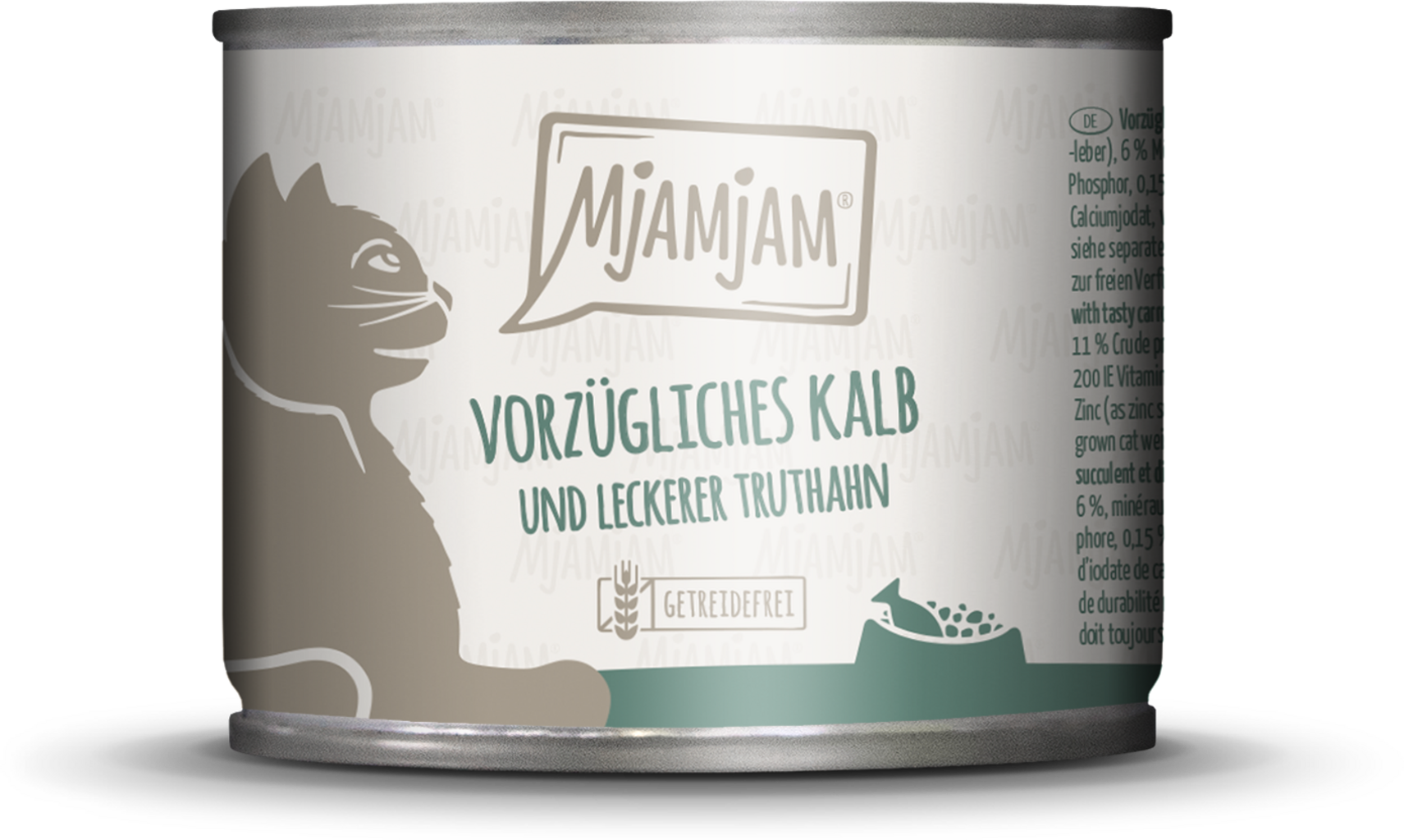 La nourriture humide de Mjamjam offre à votre chat une saveur riche, une qualité incomparable et une touche d’amour. Votre animal de compagnie profite d’un repas complet composé de viande de veau savoureuse, de dinde appétissante et de carottes croquantes. Tout est réuni pour répondre à ses besoins.
