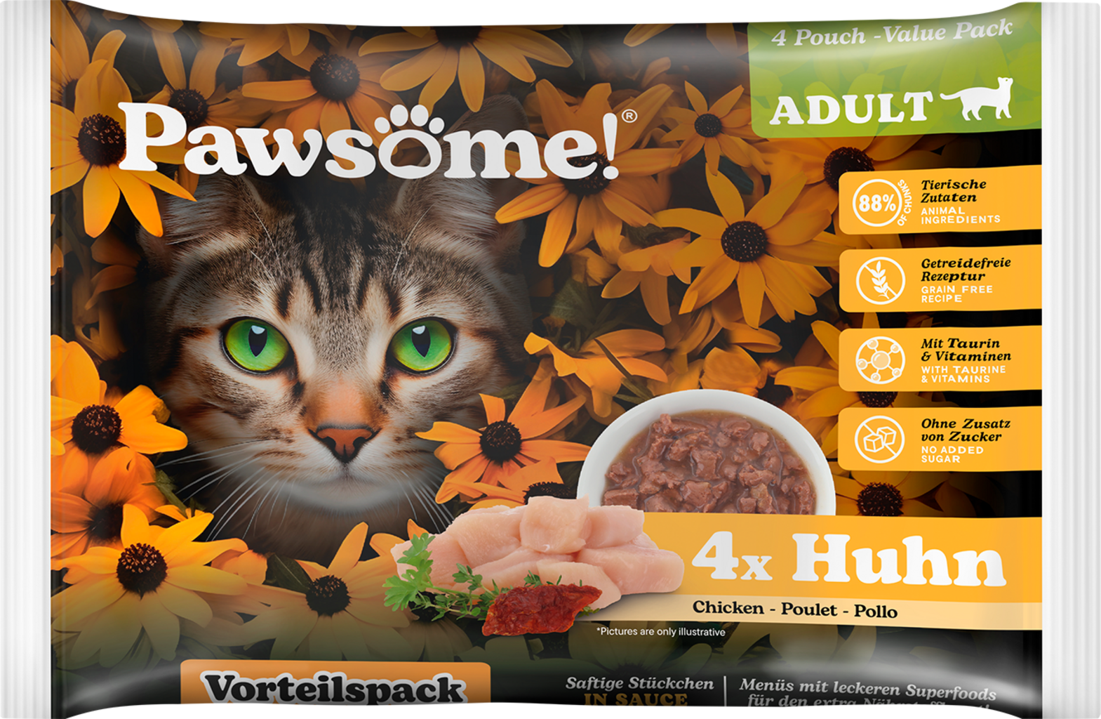 Pawsome! Adult Poulet, 4 x 85 g (340 g)