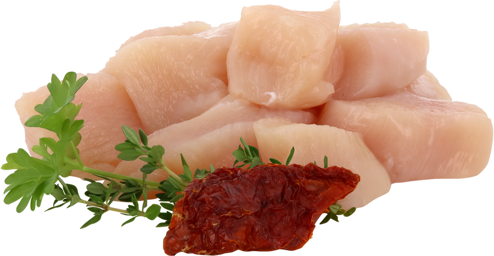 88 % viande et sous-produits d'origine animale (40,6 % poulet), Mineralstoffe, amidon de pois, protéine de pois, 0,45 % tomates séchées , 0,4 % inuline (chicorée), lignocellulose, 0,025 % thym, 0,025 % persil