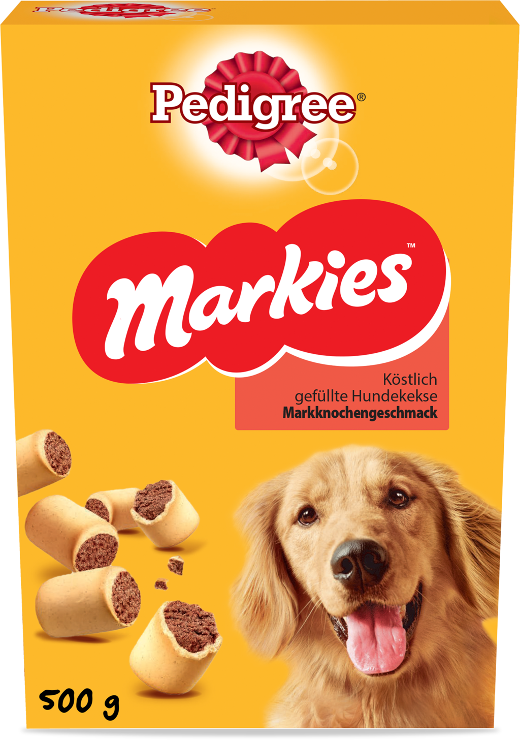 Les chiens de taille moyenne, comme les Cocker Spaniels, peuvent en recevoir jusqu’à 2 par jour ; pour les grandes races comme les Labradors, 4 biscuits par jour conviennent. La quantité d’aliment principal doit être réduite en conséquence. Veillez à toujours mettre de l’eau fraîche à disposition. Conserver Pedigree® Markies® dans un endroit frais et sec.