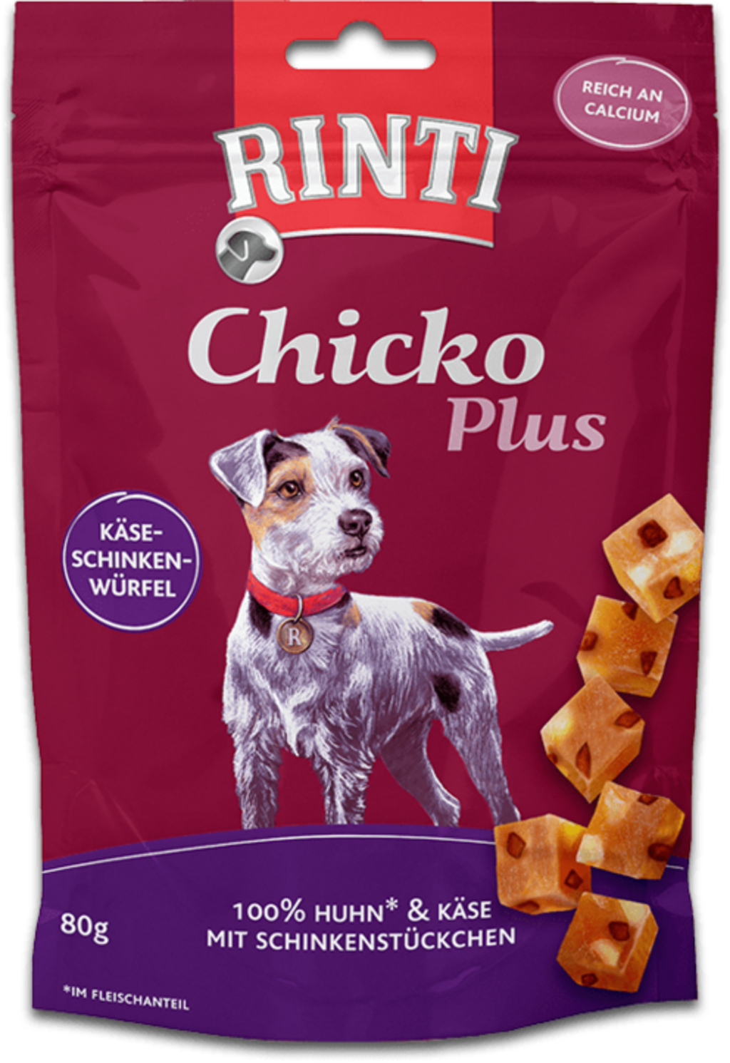 Rinti Chicko Plus - 80 g, Cubes de fromage et jambon (80 g)