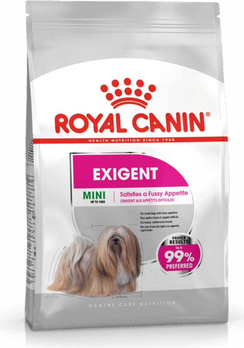 Exigent Mini de ROYAL CANIN® est spécialement conçu pour satisfaire les palais les plus exigeants des chiens jusqu’à 10 kg et apporte tous les nutriments dont un chien de petite taille a besoin pour mener une vie saine.