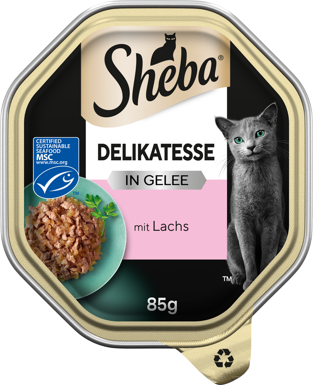 Le saumon est pour la plupart des chats une délicatesse absolument irrésistible ! Sheba associe dans cette recette une chair de saumon savoureuse à une gelée appétissante, un véritable aliment humide gourmet pour chats adultes. Aucun colorant ni conservateur artificiel n’est ajouté ; la coupelle s’ouvre en un instant, pratique pour les chats qui réclament leur repas au quotidien.