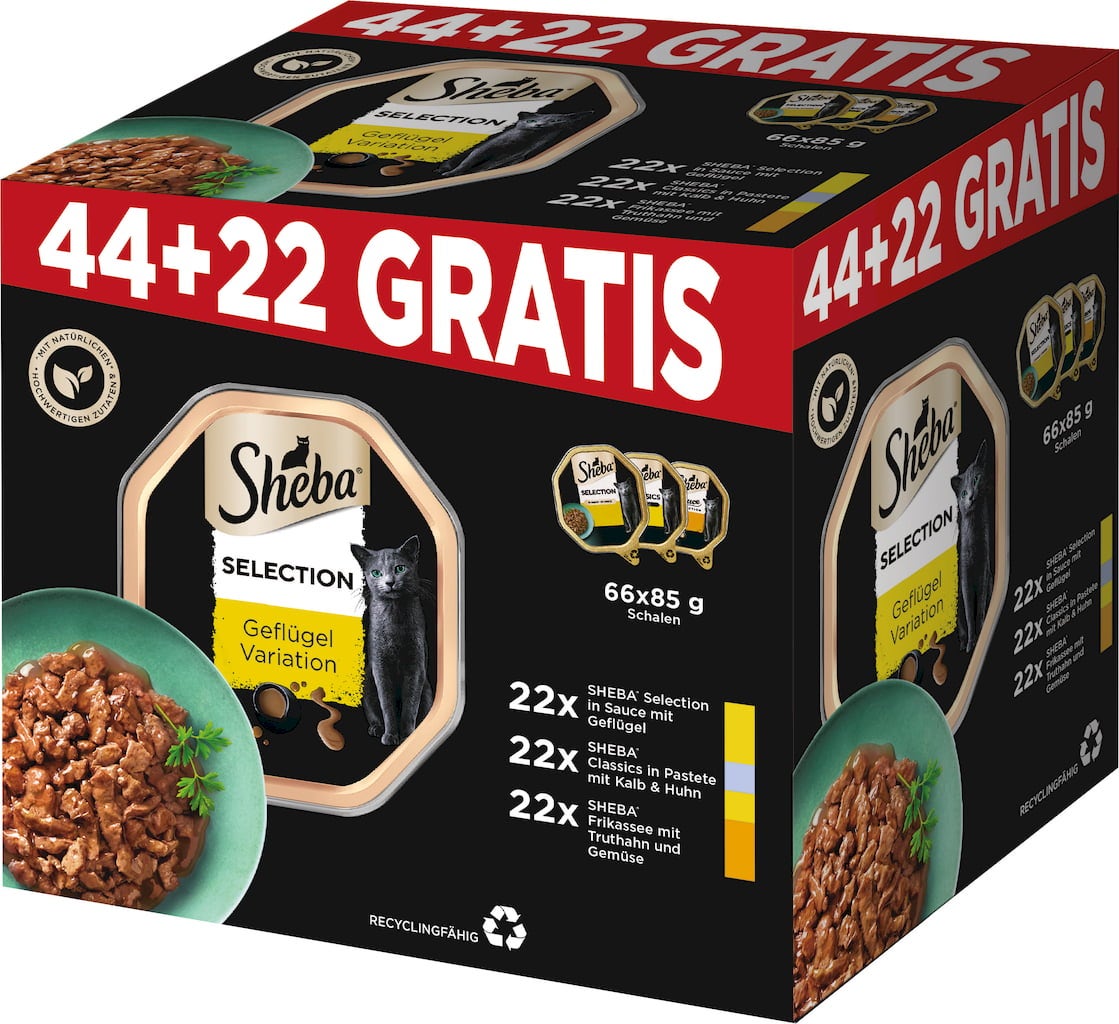 Sheba Pluspack 44 Barquettes + 22 Offertes (3 Variétés), 5,61 kg