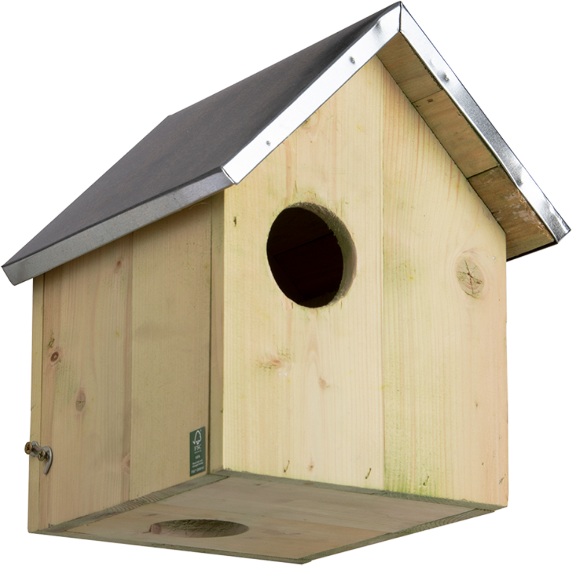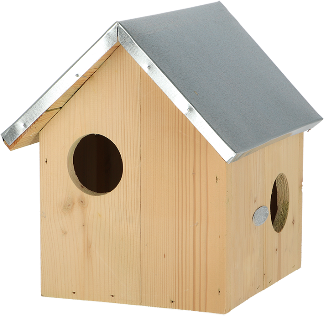 Accrochez plusieurs abris à la vue les uns des autres. Un abri pour écureuil a toujours plusieurs entrées possibles. Il est important de placer cet abri dans un endroit donnant aux écureuils la sécurité nécessaire. En cas de danger, l'abri pourra être quitté rapidement. Fixez-le le plus haut possible dans un arbre et si possible orienté sud-est. Pin certifié FSC® avec toit en zinc.
