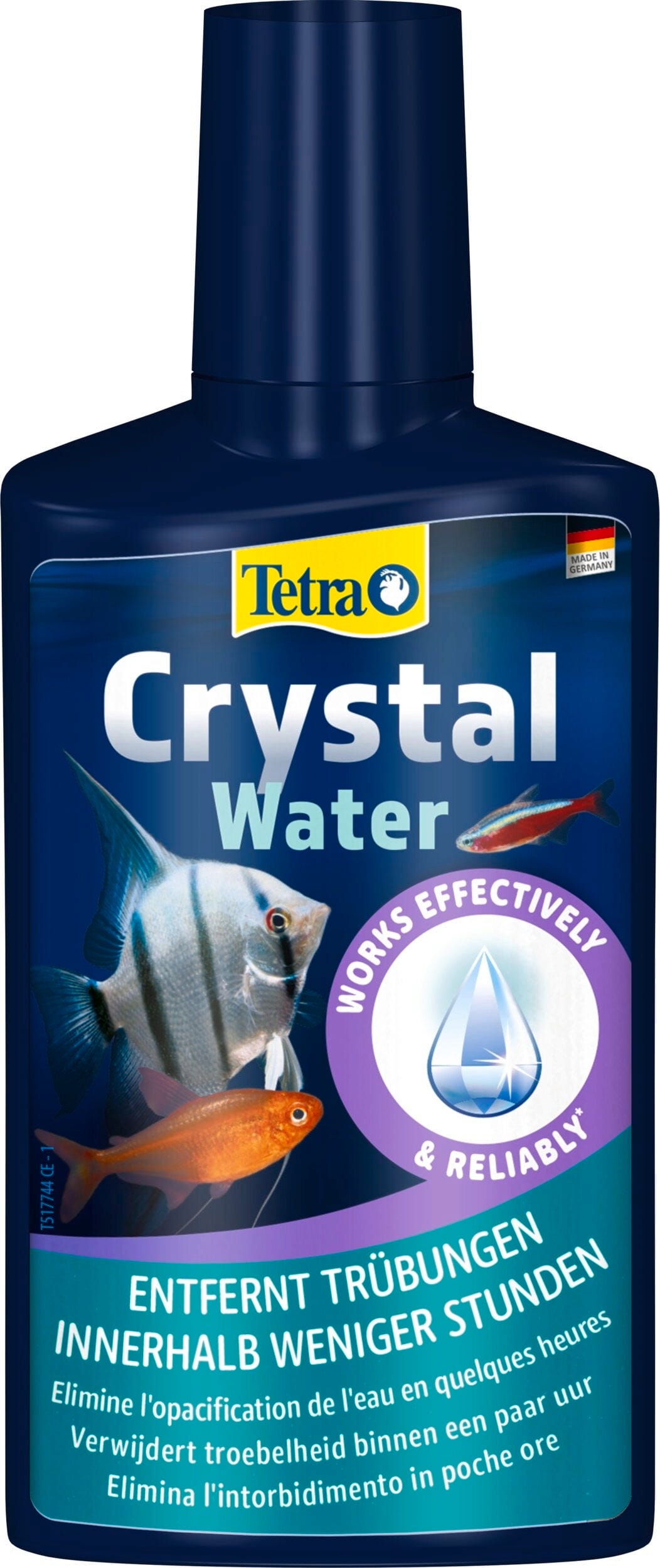 Avec le conditionneur d’eau CrystalWater de Tetra, l’eau trouble se transforme en un clin d’œil en un univers aquatique cristallin où poissons et plantes révèlent toute leur beauté. Le produit agit de manière fiable tout en préservant les habitants de l’aquarium grâce à des minéraux spécifiques. Ces substances actives agglomèrent les fines particules en suspension responsables de la turbidité en éléments plus gros, facilement captés et éliminés par le filtre.