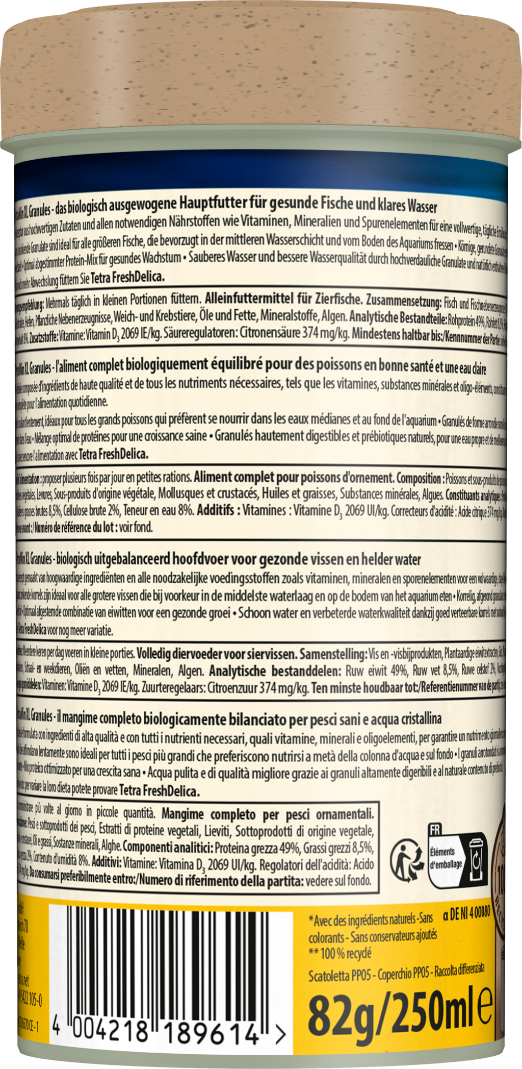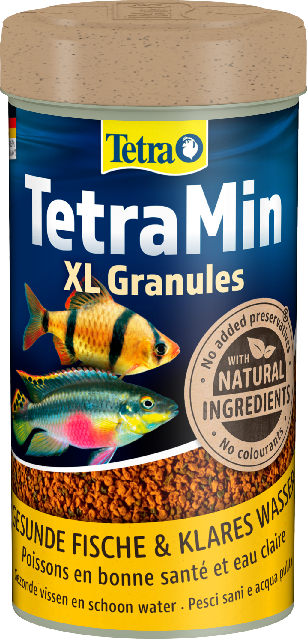 TetraMin XL Granules est un aliment principal équilibré, spécialement conçu sous forme de granulés fins pour les grands poissons tropicaux d'aquarium d'eau douce.