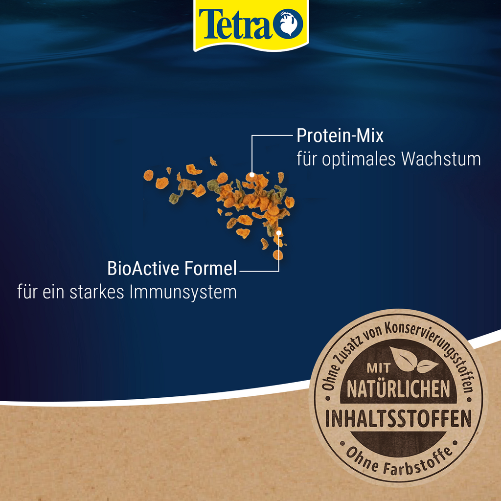 Cette formule de haute qualité, élaborée avec des ingrédients naturels et un mélange spécial de protéines, intègre la formule BioActive avec des prébiotiques. Elle ne contient ni colorants ni conservateurs ajoutés, favorisant ainsi la vitalité des poissons et un système immunitaire sain. Sa haute digestibilité contribue également à maintenir l'eau de l'aquarium propre plus longtemps.