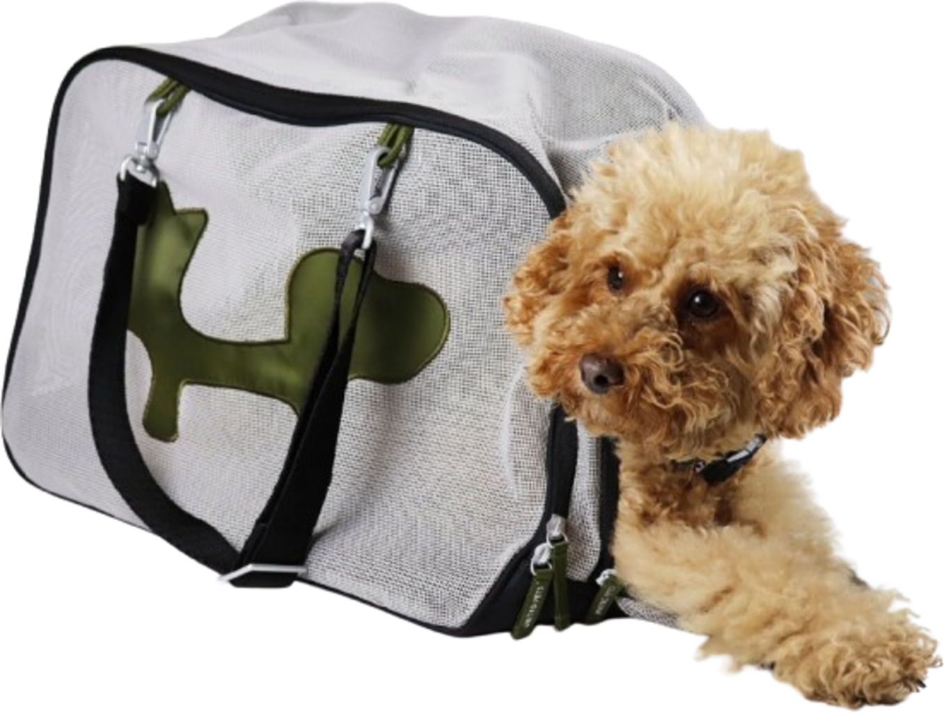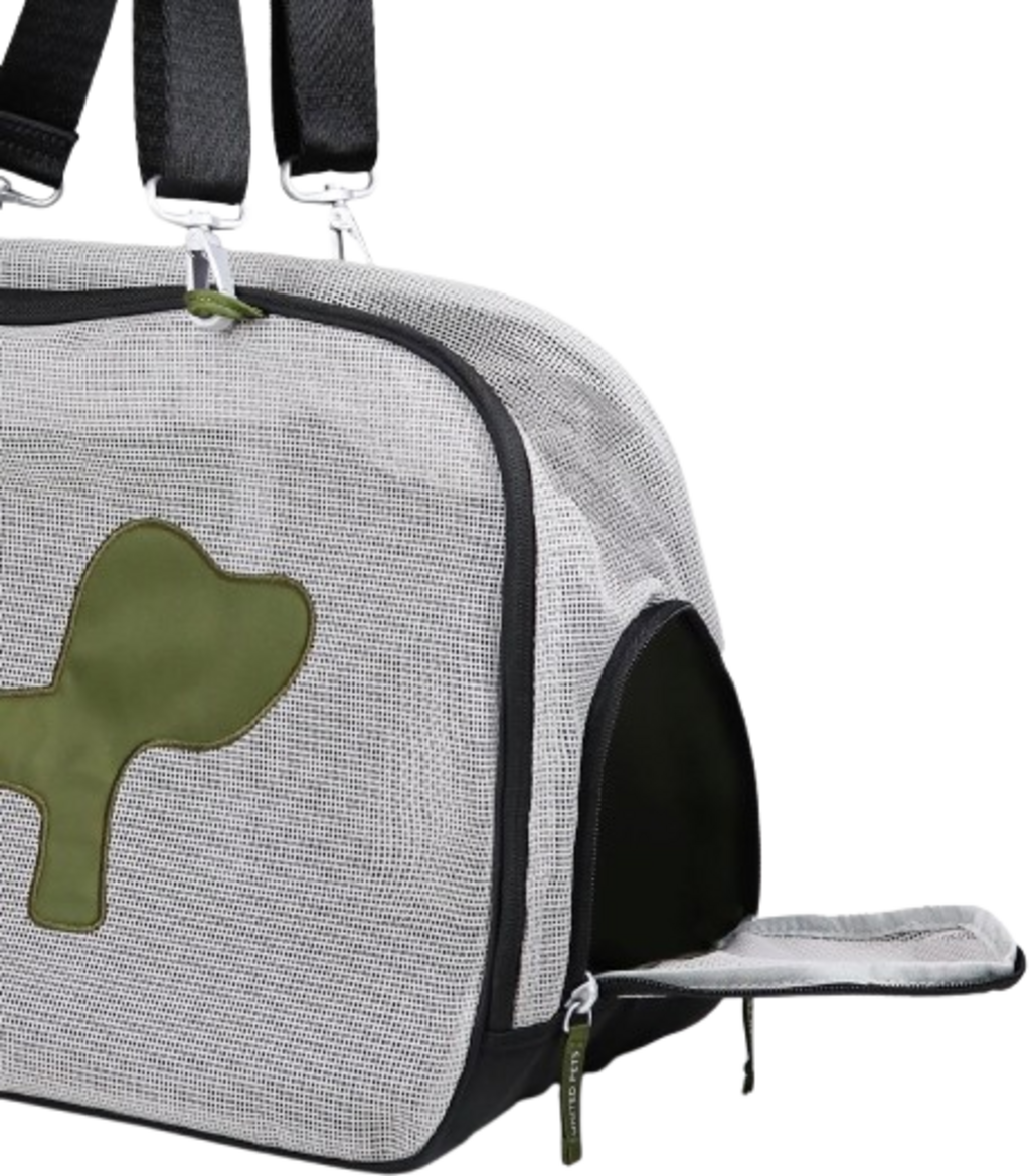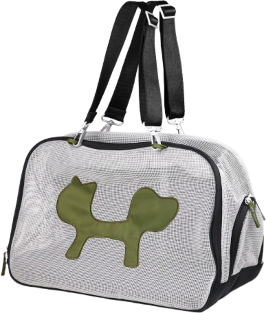 Sac de transport pratique pour chats et petits chiens, pouvant également être utilisé comme sac à dos. Le large filet respirant assure une excellente circulation de l'air pour le confort de votre animal. Il est équipé d'un mousqueton de sécurité pour fixer le collier du chien et d'une sangle permettant de l'attacher à un chariot. Son format est conforme aux normes de transport aérien, et il est à la fois pliable et lavable.
