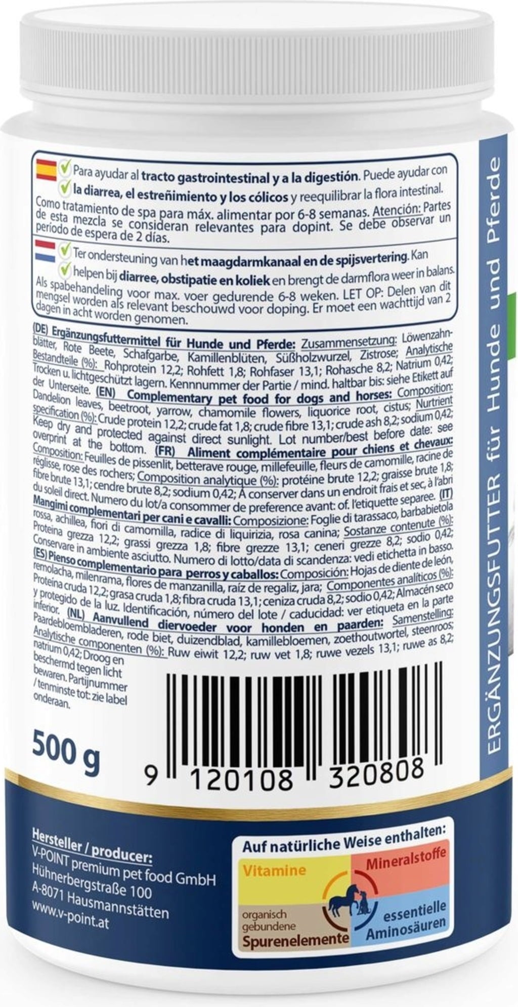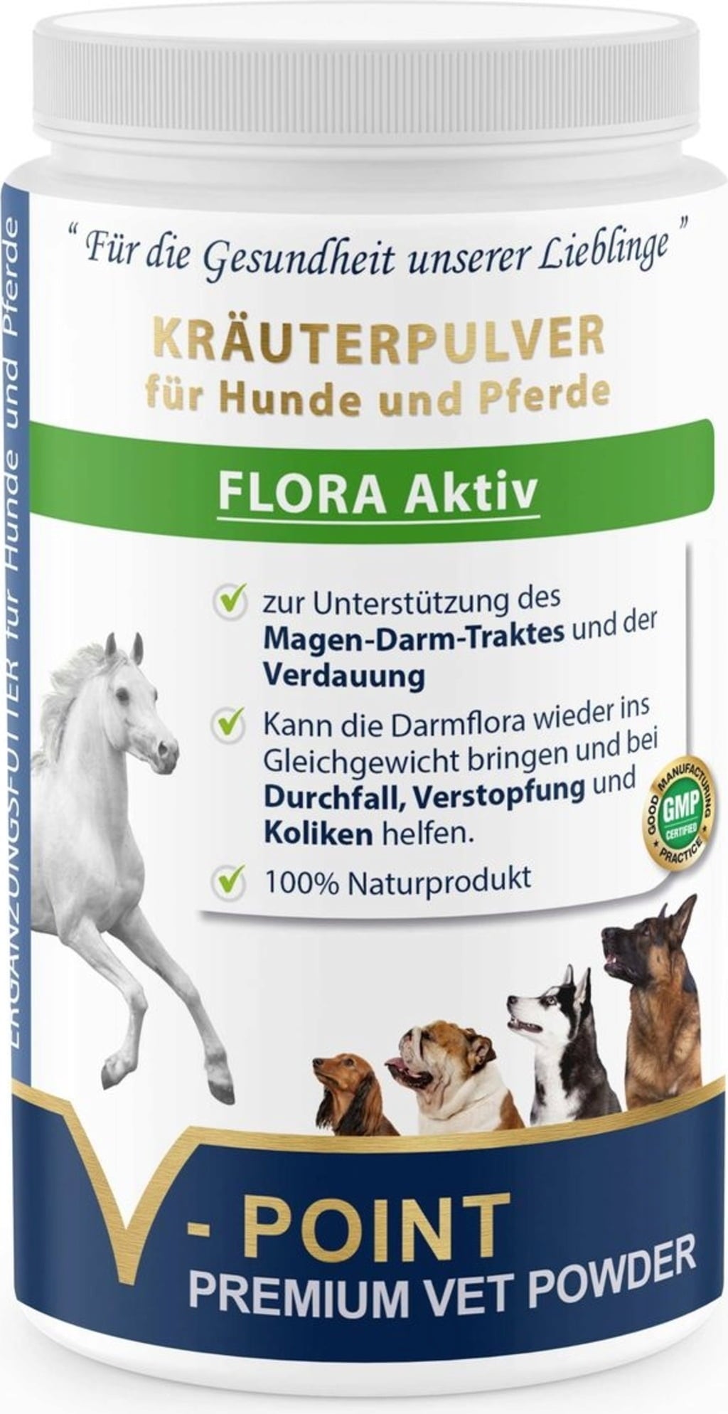 V-POINT FLORA Aktiv - Poudre Végétale Premium pour Chien & Cheval, 500 g