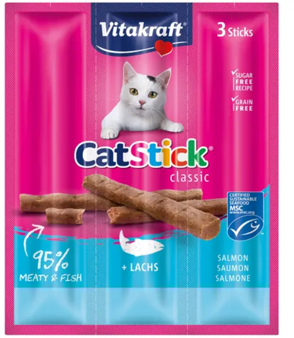 Vitakraft Cat Stick® + - Collations pour Chats, Saumon MSC (18 g)