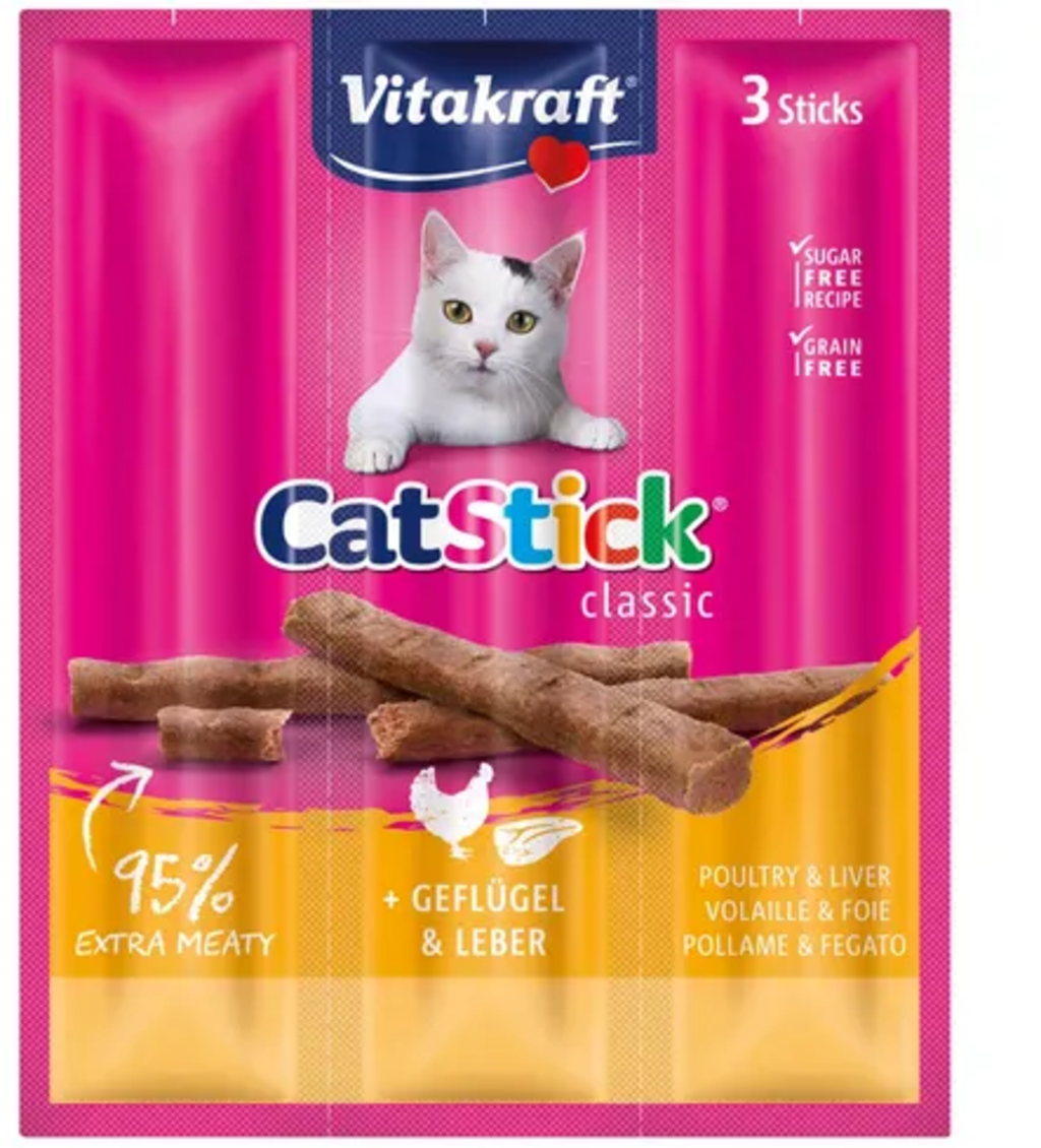 Vitakraft Cat Stick® + - Collations pour Chats, Volaille & foie (18 g)