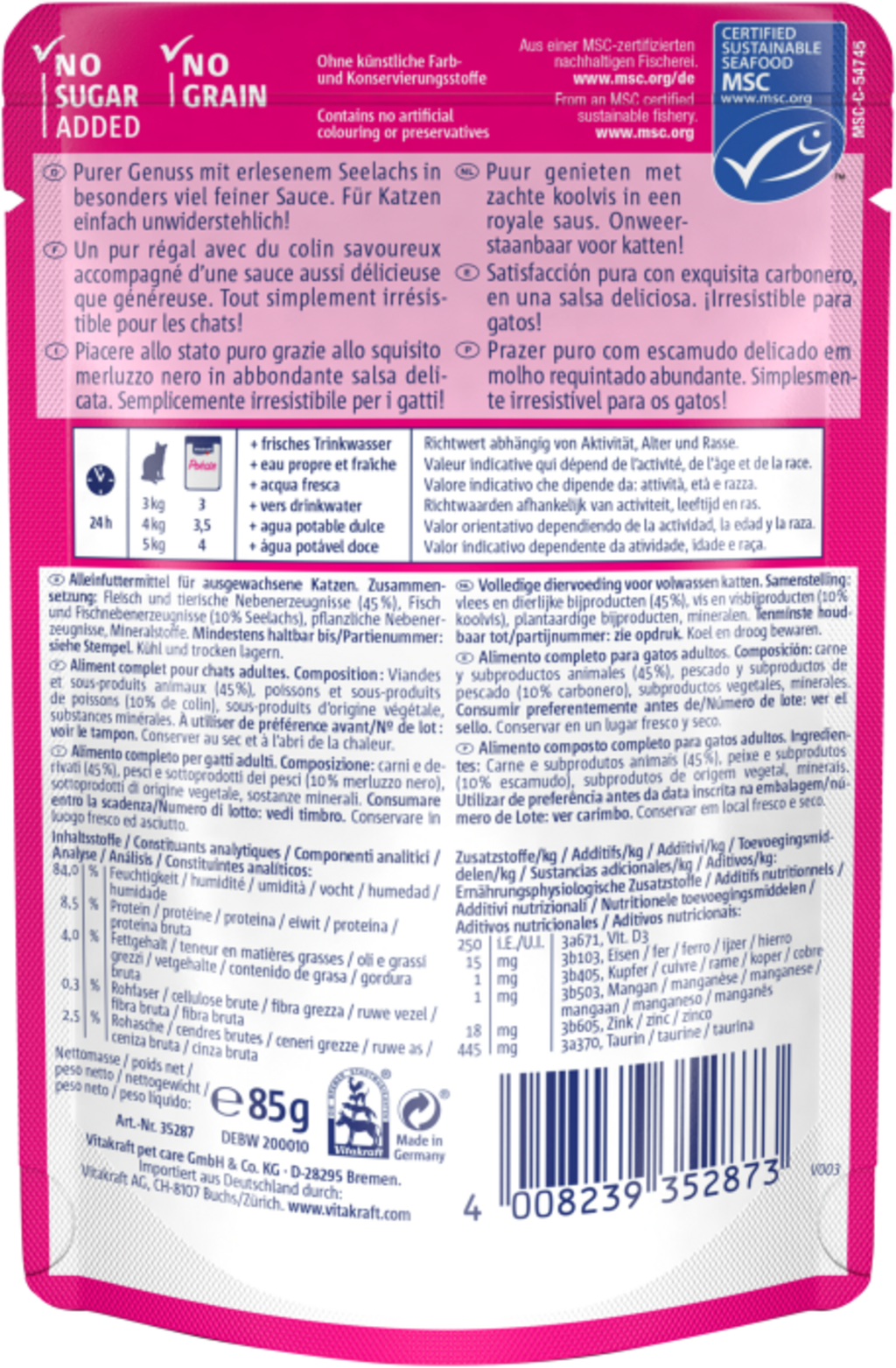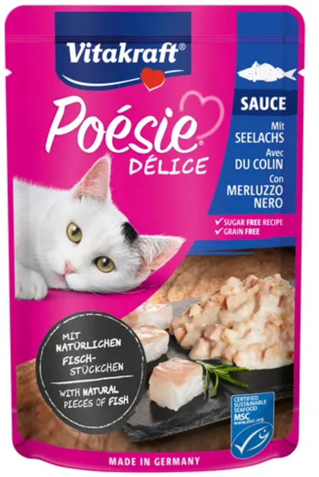 Vitakraft Poésie® Délice Sauce - Pâtée pour Chat, Lieu noir (85 g)