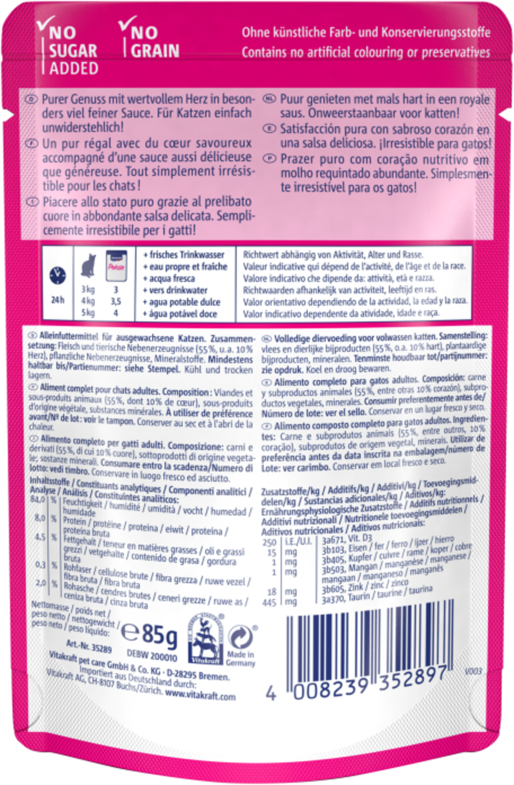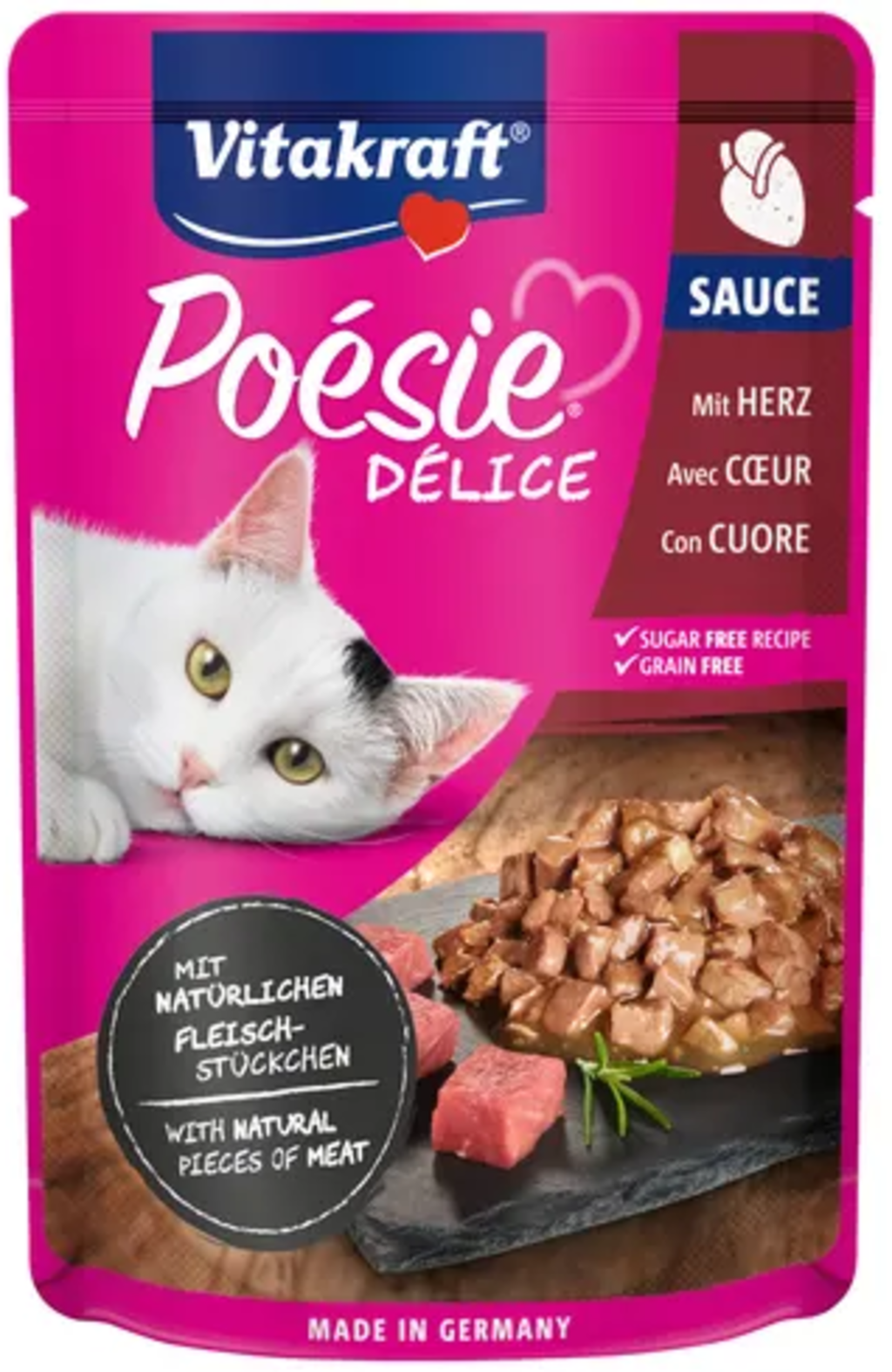 Vitakraft Poésie® Délice Sauce - Pâtée pour Chat, Coeur (85 g)