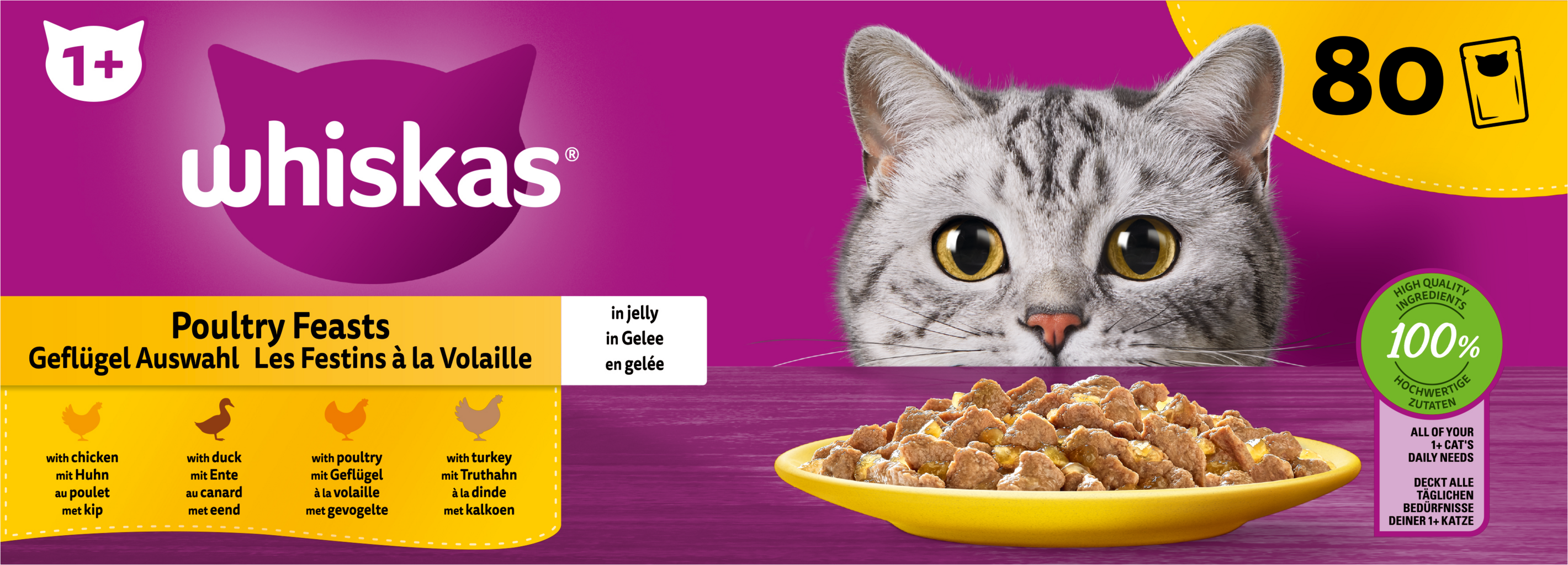 Whiskas Megapack Sélection de Volaille en Gelée 1+ – 80 x 85 g, 6.800 g