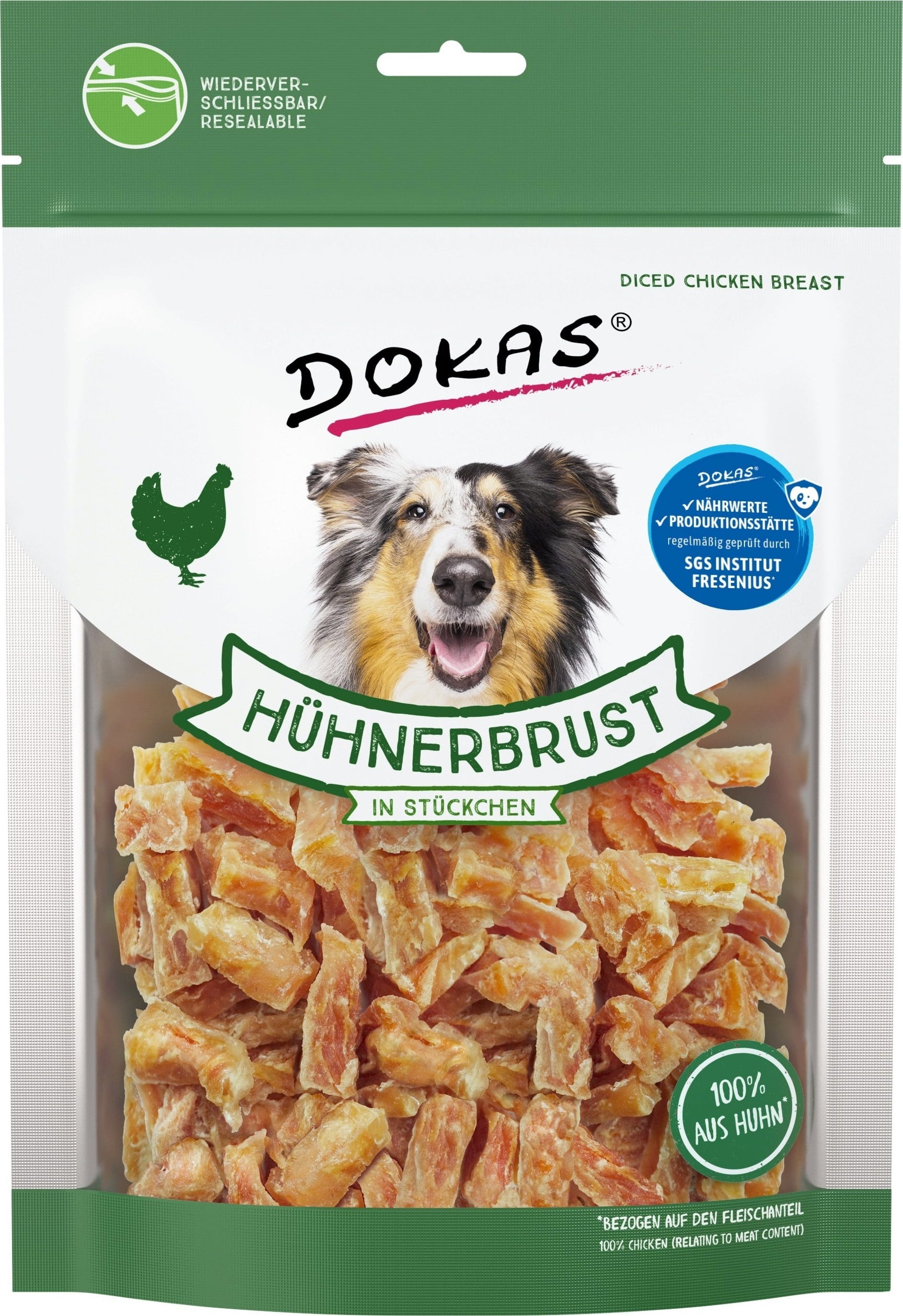 De stukjes kipfilet van Dokas bestaan voor 100% uit kipfilet* en vormen een bijzonder vetarme lekkernij. De kleine hapjes zijn perfect als motivatie tijdens de training en ook onderweg altijd een slimme keuze.