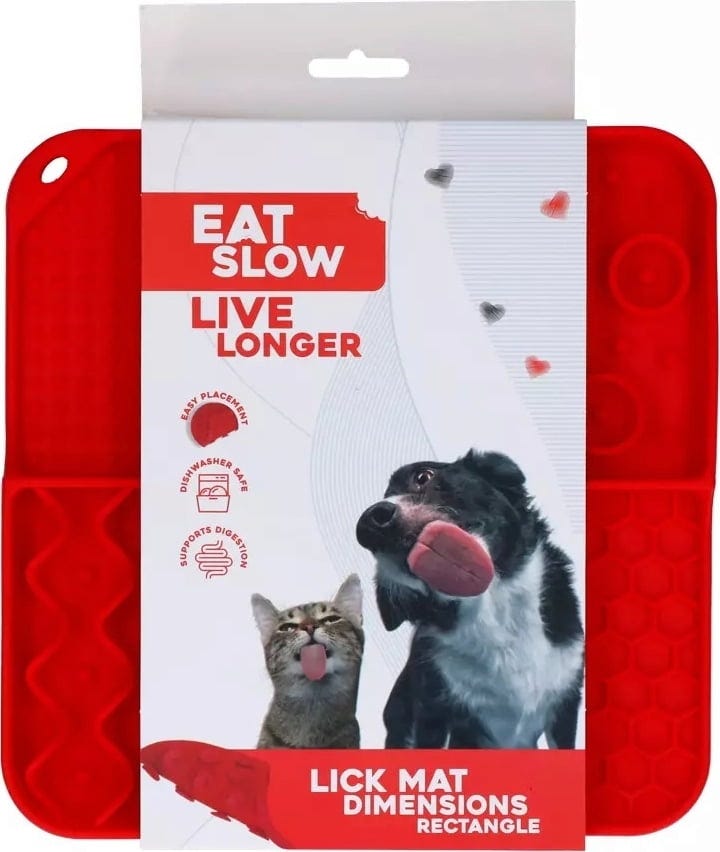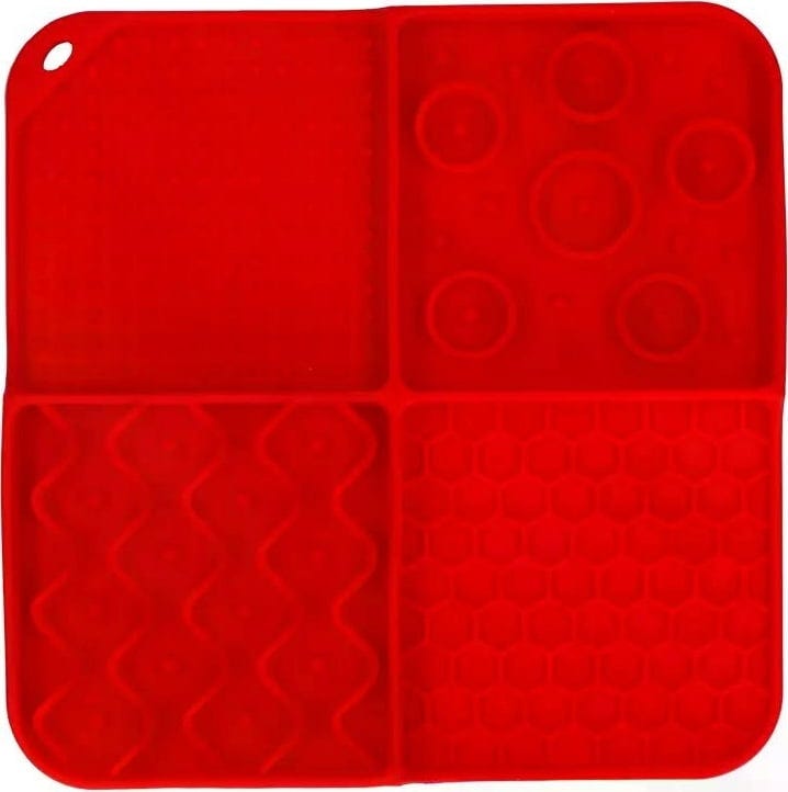 Maakt snacken nog leuker! Deze innovatieve likmat is ontwikkeld om je hond of kat een uitdagende en soorteigen activiteit te bieden. Met 4 verschillende structuren (noppen, honingraten, cirkels en golven) maakt deze mat het oplikken van lekkers tot een bijzondere uitdaging voor je viervoeter. Je huisdier zal zich moeten concentreren om elk hoekje en gaatje te bereiken - dus langdurig snack- en speelplezier is gegarandeerd!