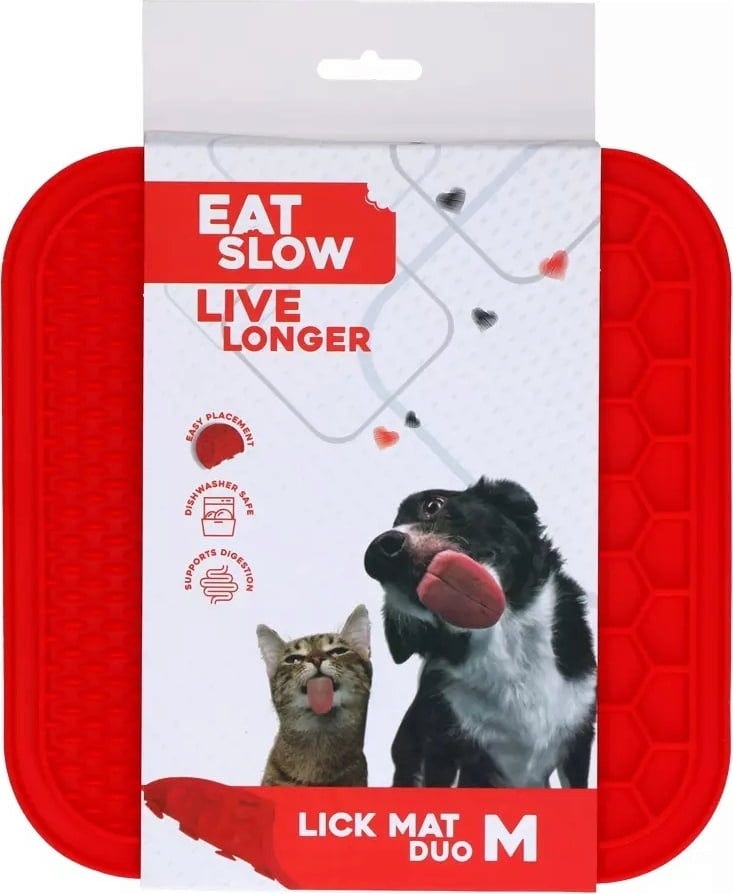 Zo wordt snacken nog leuker. Deze innovatieve likmat is ontwikkeld om je hond of kat een uitdagende en soorteigen activiteit te bieden. Met twee verschillende structuren (noppen en honingraten) maakt deze mat het oplikken van lekkers tot een bijzondere uitdaging voor je viervoeter. Je huisdier zal zich moeten concentreren om elk hoekje en gaatje te bereiken, dus langdurig snack- en speelplezier is gegarandeerd!