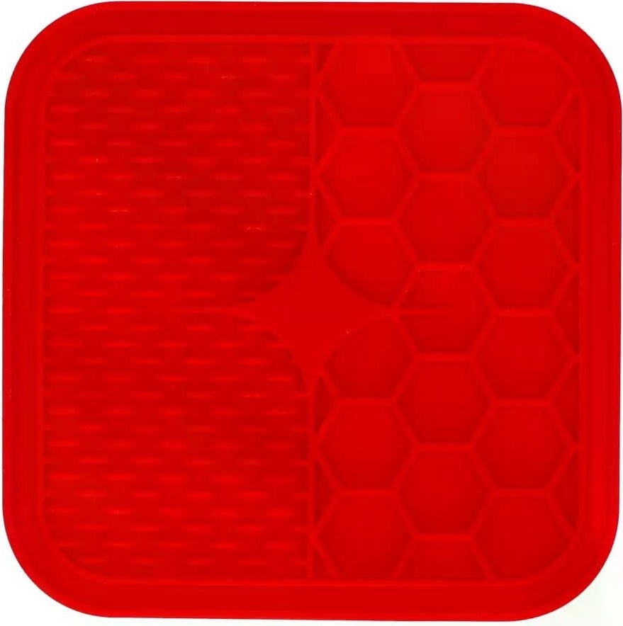 Zo wordt snacken nog leuker. Deze innovatieve likmat is ontwikkeld om je hond of kat een uitdagende en soorteigen activiteit te bieden. Met twee verschillende structuren (noppen en honingraten) maakt deze mat het oplikken van lekkers tot een bijzondere uitdaging voor je viervoeter. Je huisdier zal zich moeten concentreren om elk hoekje en gaatje te bereiken, dus langdurig snack- en speelplezier is gegarandeerd!
