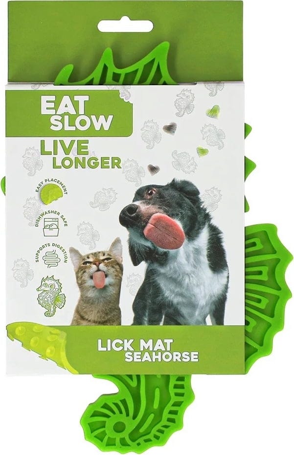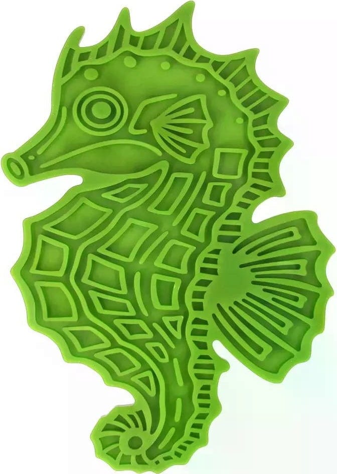 Niet alleen visliefhebbers zullen hiervan houden! Deze innovatieve likmat in de vorm van een schattig zeepaardje is ontwikkeld om je hond of kat een uitdagende en diervriendelijke activiteit te bieden. Met zijn gestructureerde oppervlak met verschillende patronen maakt deze mat het oplikken van lekkernijen tot een bijzondere ervaring voor je viervoeter. Je huisdier zal zich moeten concentreren om elk hoekje en gaatje te bereiken, dus langdurig snack- en speelplezier is gegarandeerd!