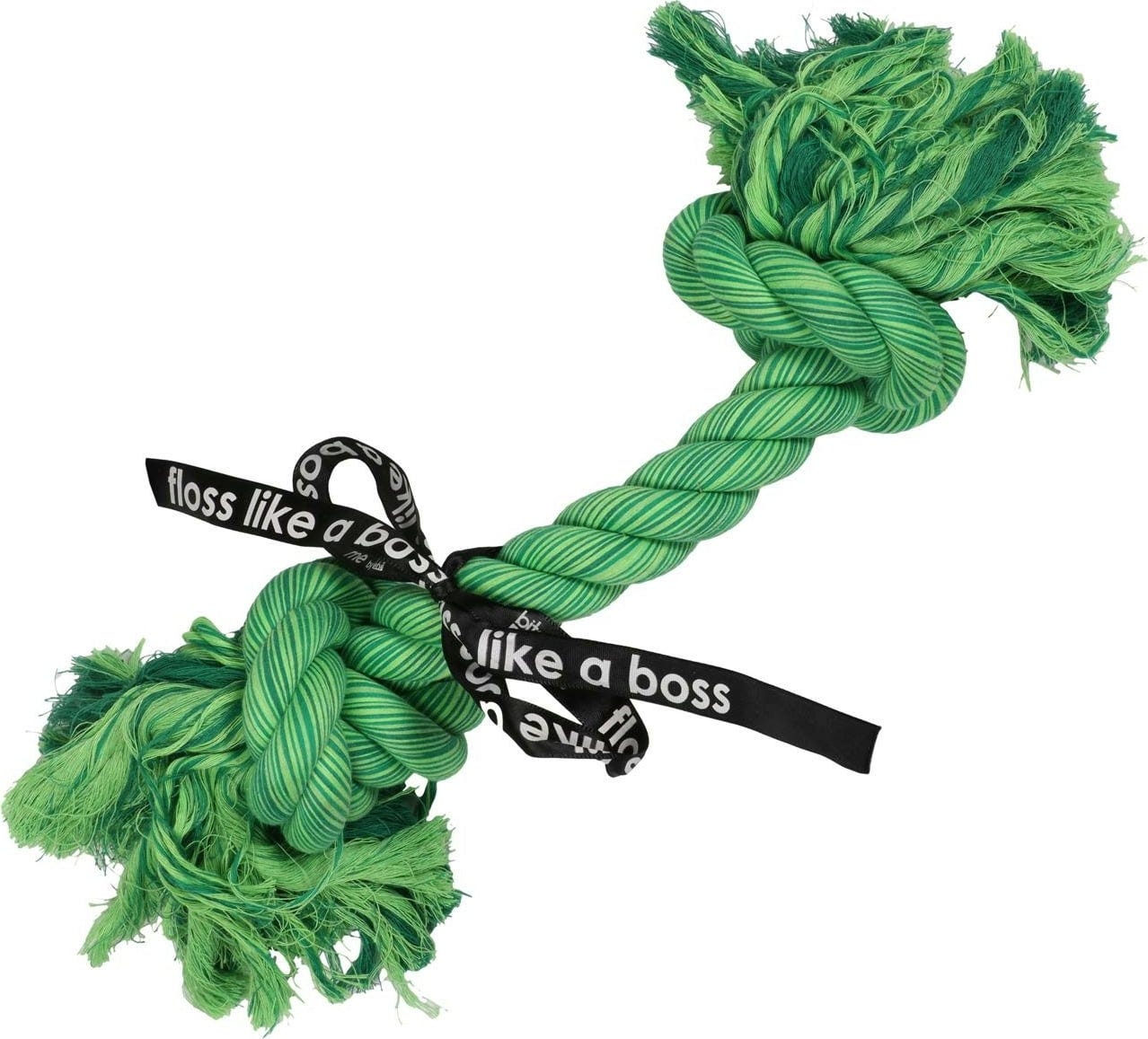 Plezier en tandverzorging - dit touw met twee knopen is gemaakt van tandvriendelijk katoenen textiel en is geschikt voor uitbundige trekspelletjes en intensieve kauwsessies. De vezel en structuur zorgen voor een zachte verzorging, tanden en tandvlees blijven onbeschadigd en de vorming van tandsteen wordt effectief voorkomen. Gegarandeerd de nieuwe favoriet van je viervoeter!