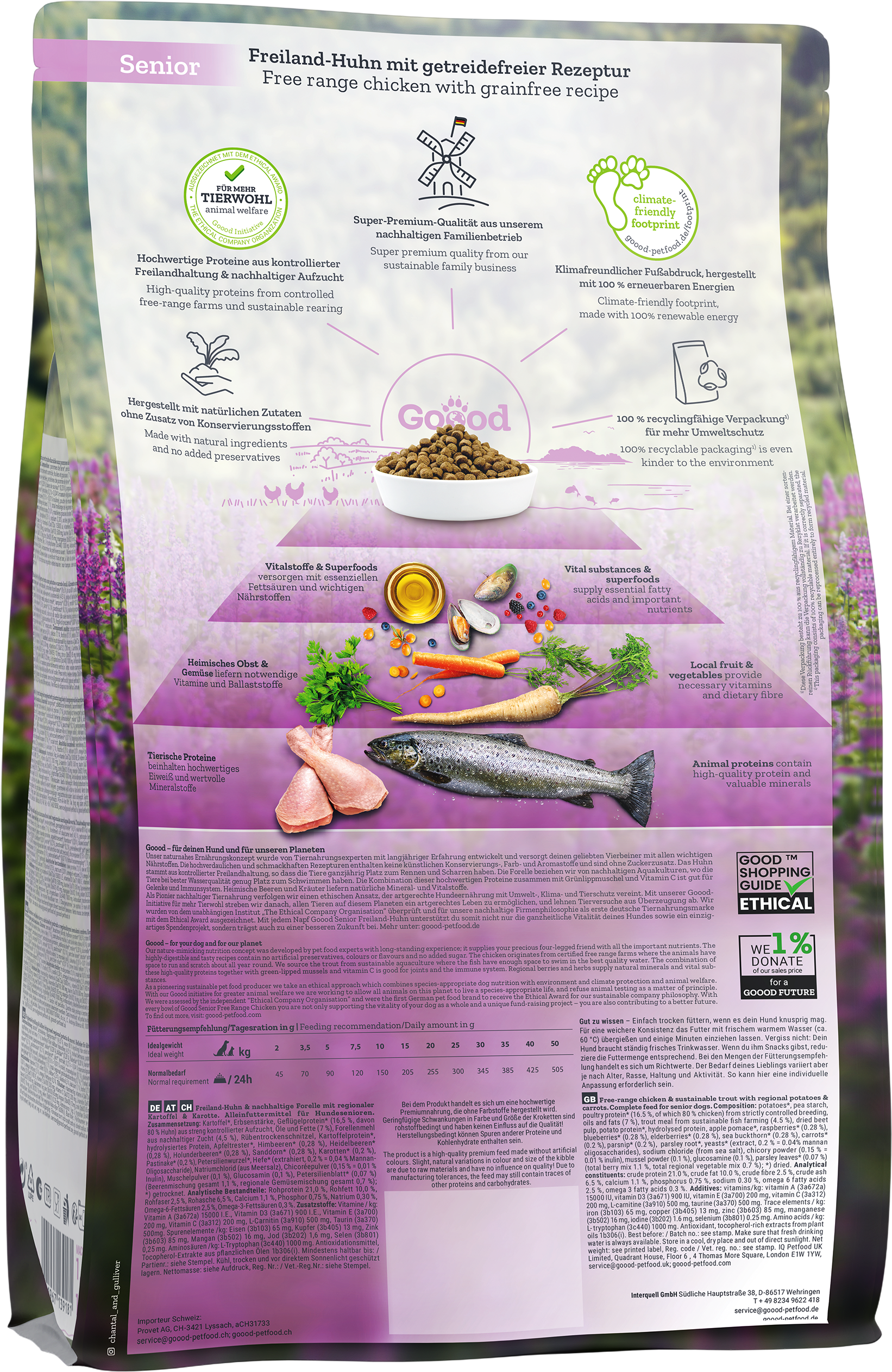 Ben je op zoek naar voer voor je hond dat niet alleen uitgebalanceerd en diervriendelijk is, maar ook bijdraagt aan een betere wereld? Dan is Goood Adult Scharrellam precies wat je zoekt! Verantwoord voer vormt immers de basis voor een vitaal hondenleven – met respect voor de natuur.