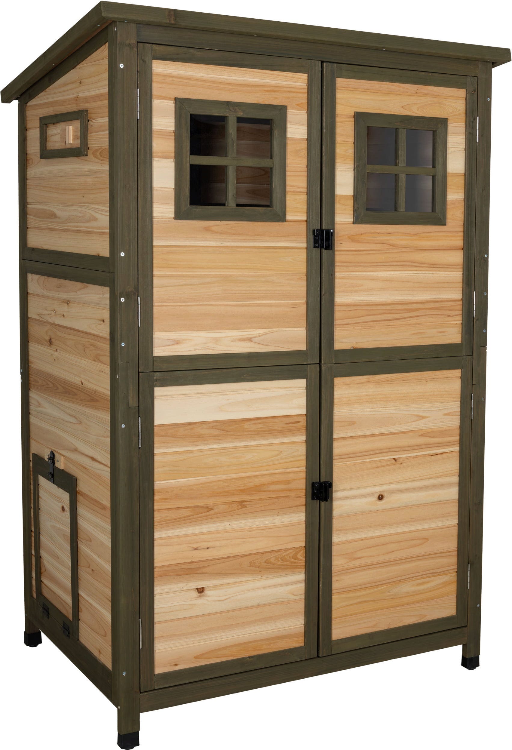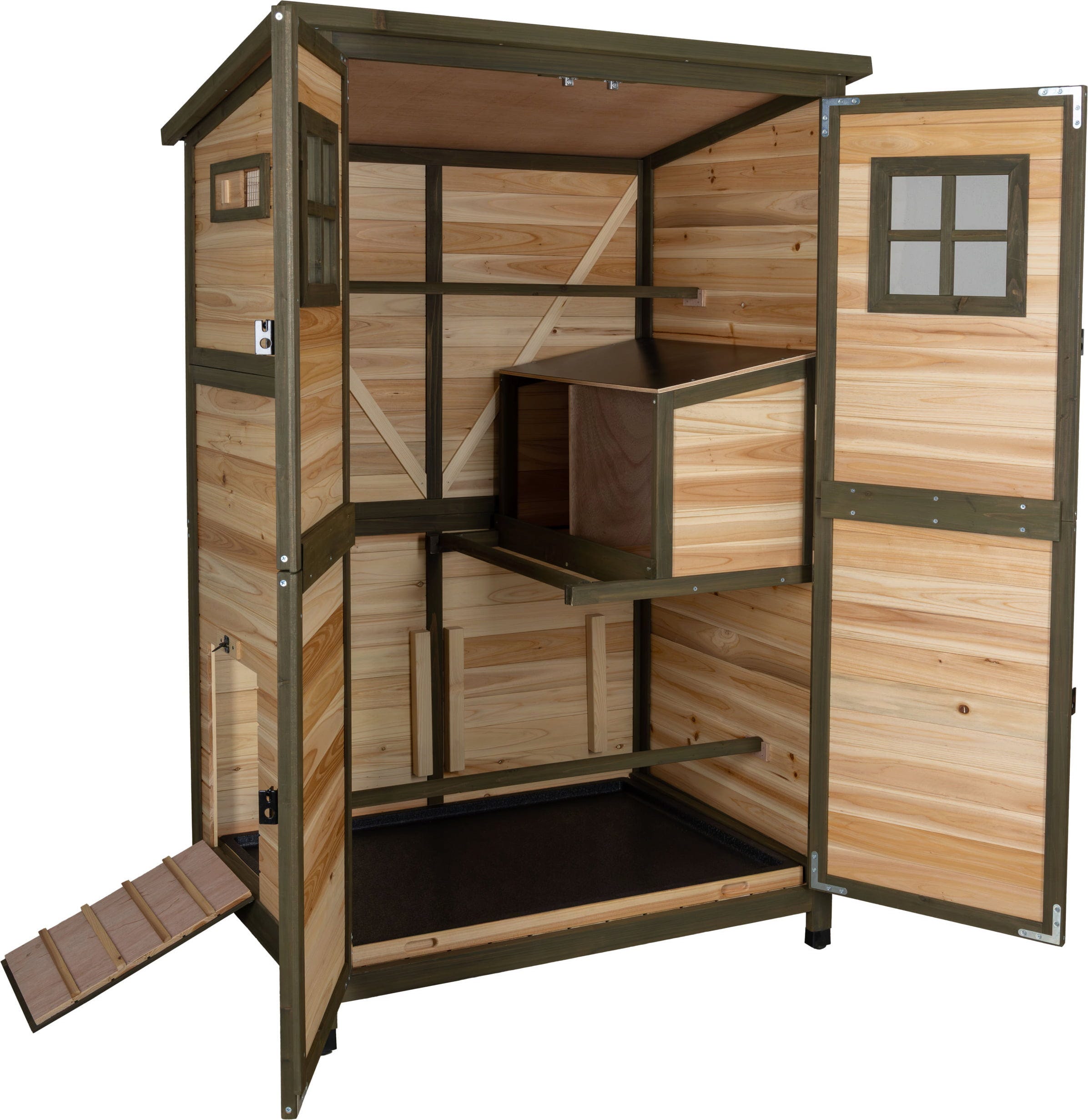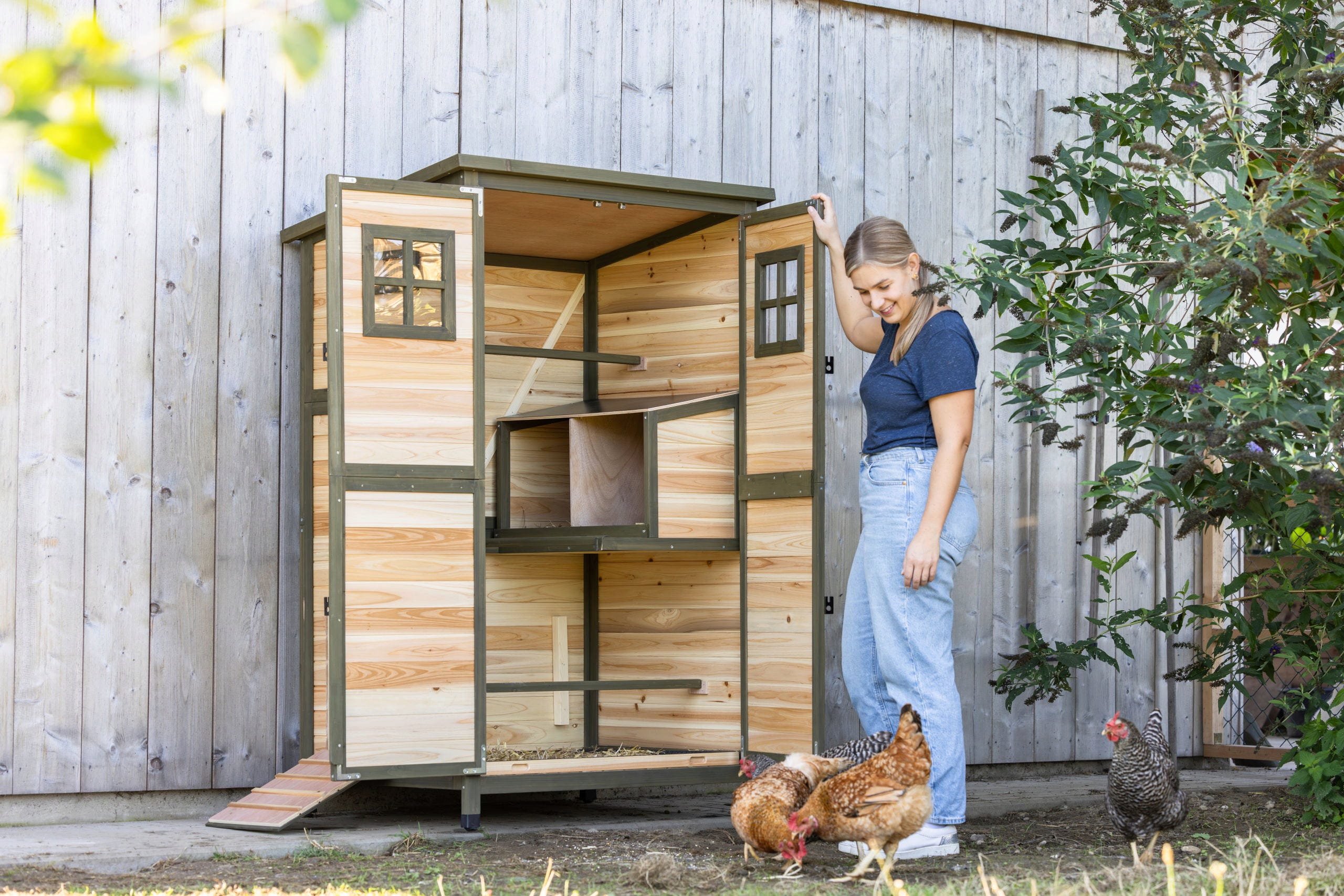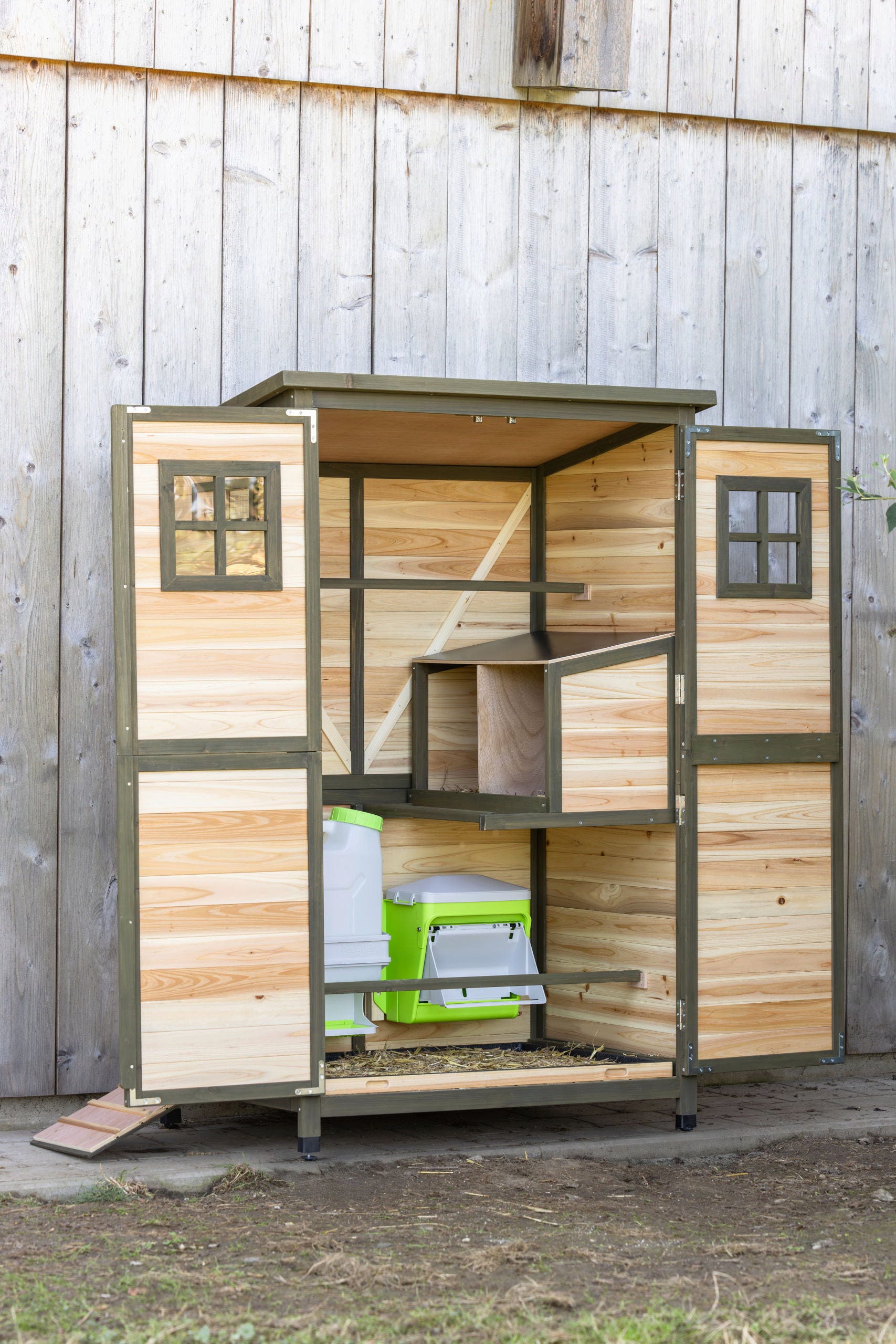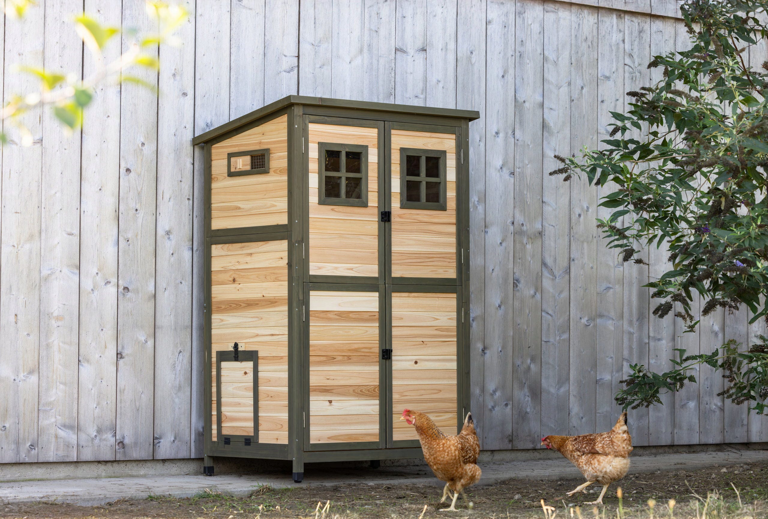 - Flexibele uitgang: Een zijdeur (30 x 40 cm) maakt de directe aansluiting van een uitloop of kippenren mogelijk.