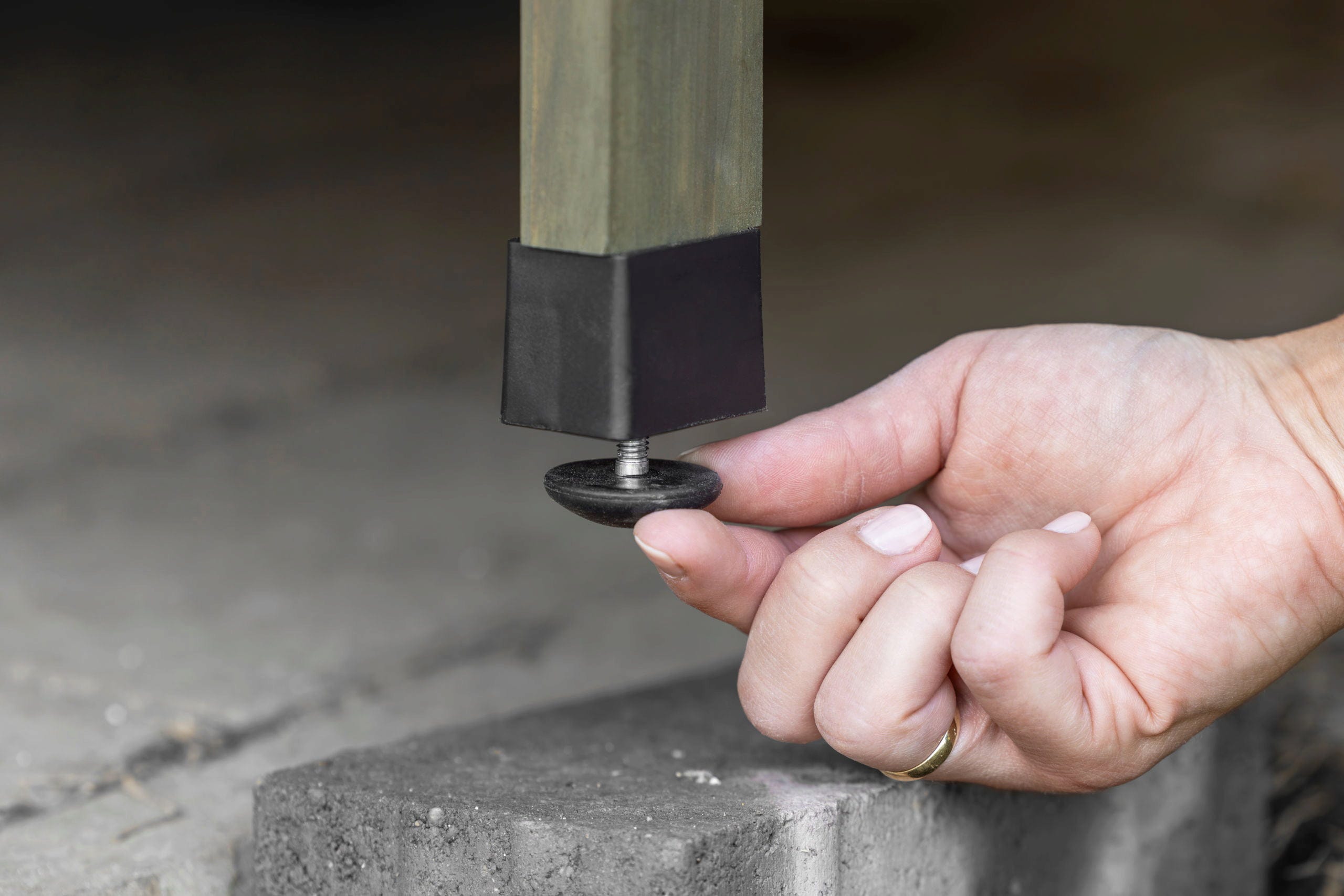 - Bescherming tegen bodemvocht: De in hoogte verstelbare kunststofvoeten beschermen het hout tegen vocht en zorgen voor een stabiele stand.