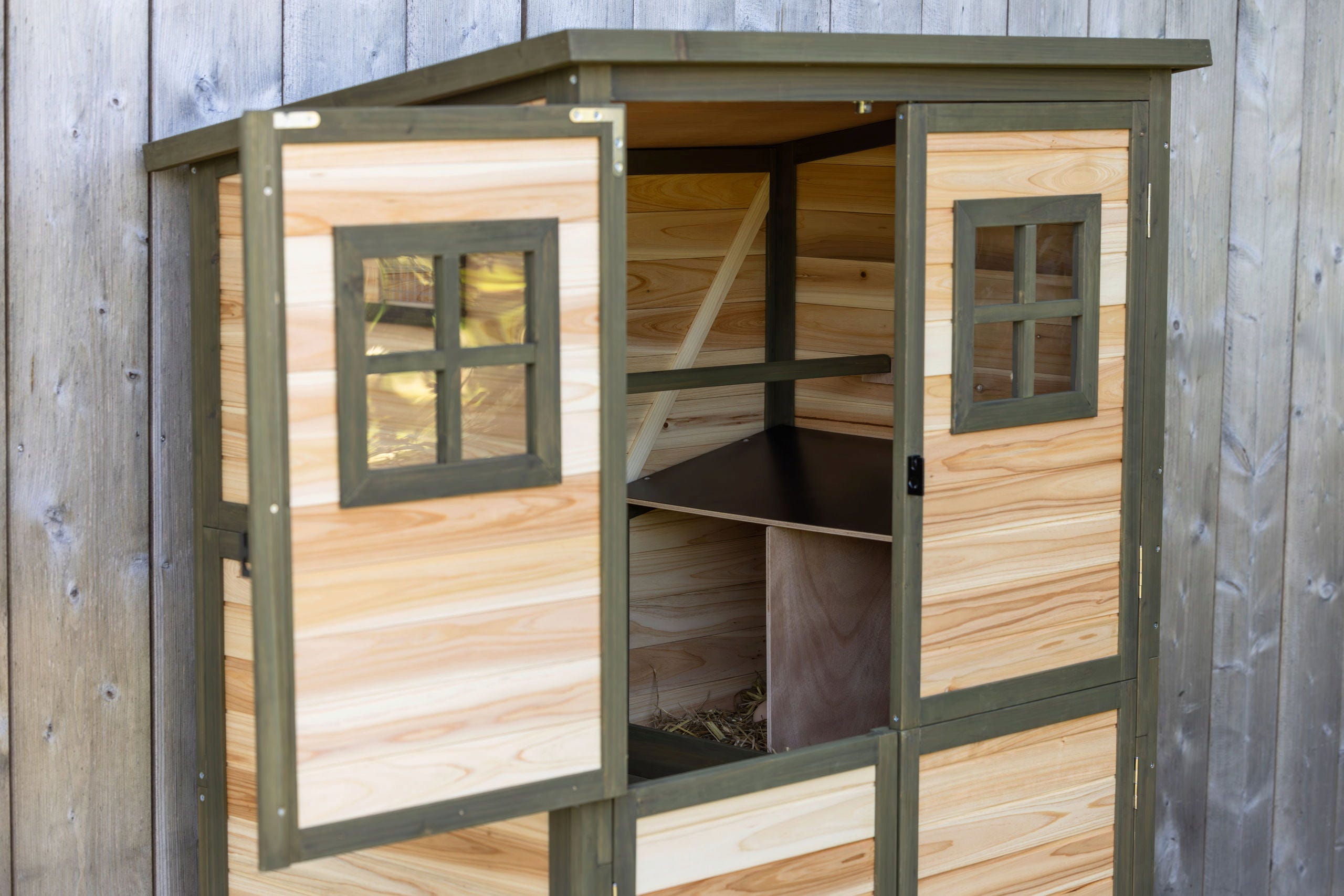- Diervriendelijke binnenruimte: Uitgerust met 2 zitstokken en 2 legnesten voor een diervriendelijke huisvesting van maximaal 10 kippen.