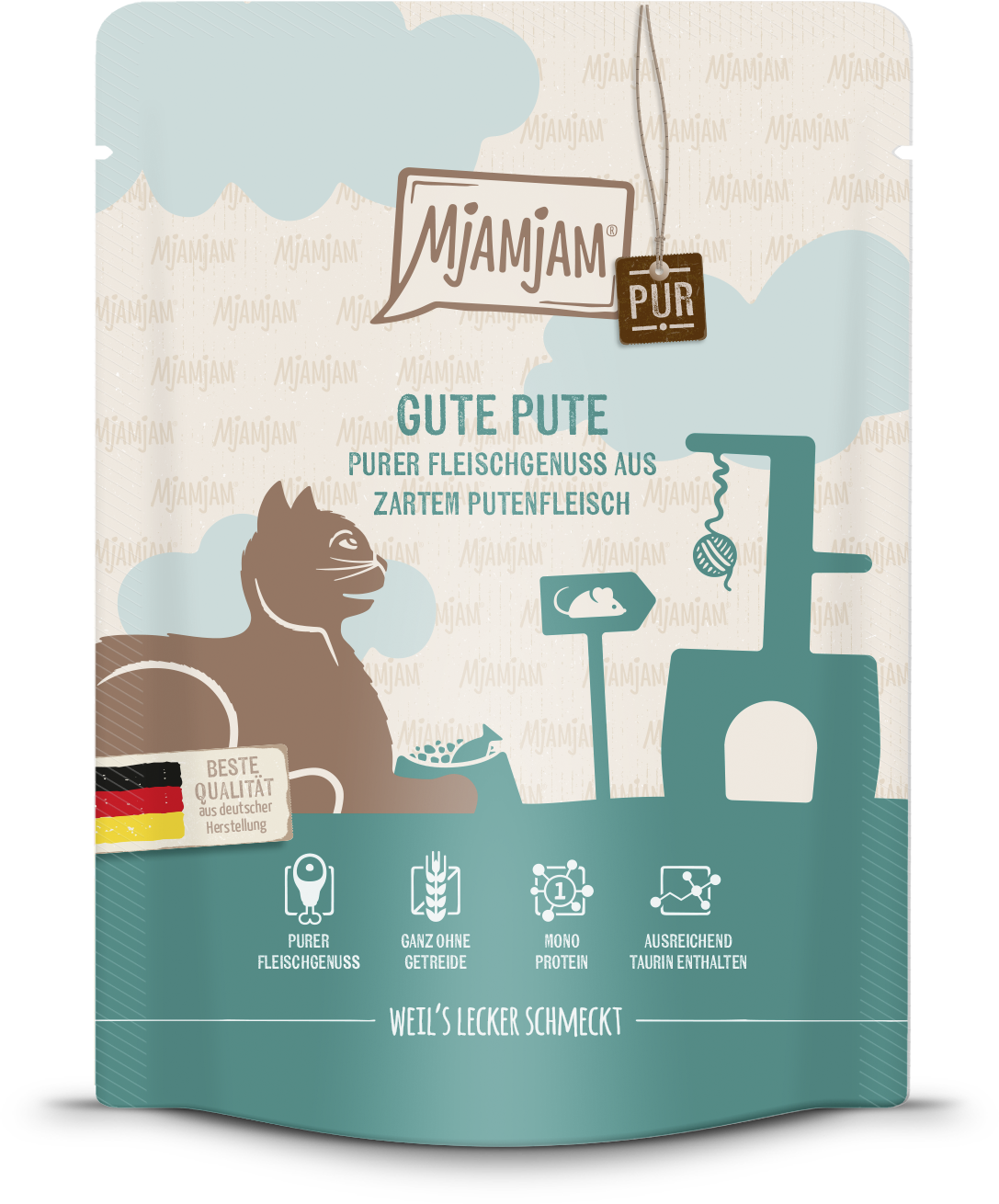 Al bij de eerste blik op de verpakking zie je dat er ongelooflijk veel liefde in de maaltijdzakjes van Mjamjam zit. En de inhoud met een hoog vleesgehalte! 100% verse en mals kalkoenvlees laat de smaakpapillen van je katdansen en zorgt voor waardevolle, soorteigen maaltijden.