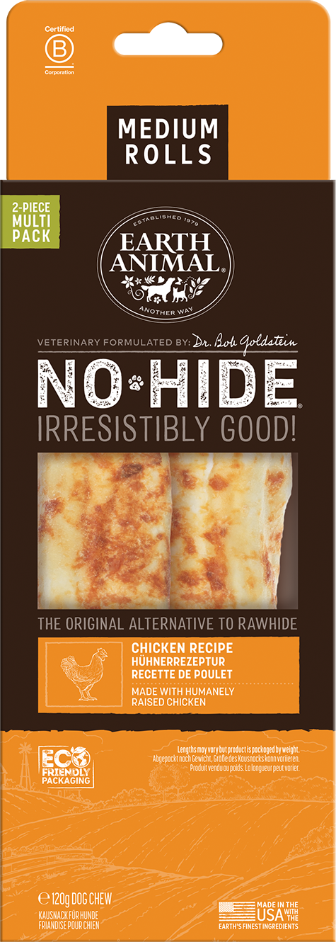 No-Hide chews zijn het perfecte handgerolde alternatief voor runderhuid. Elke snack is gemaakt van eenvoudige, natuurlijke ingrediënten. Ze worden zorgvuldig met de hand gerold, speciaal gekookt en gedroogd. Kauwen op de heerlijke snack draagt bij aan de gebitsverzorging en stimuleert de doorbloeding van het tandvlees. Tegelijkertijd versterkt het de kauwspieren en maakt het endorfine vrij.