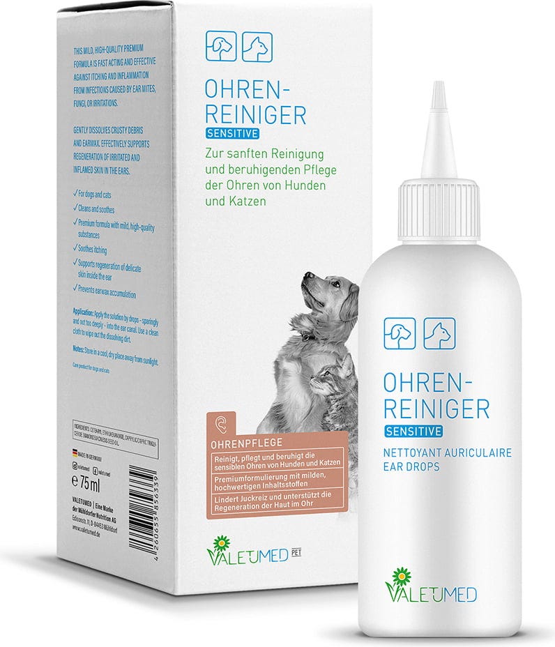 Deze hoogwaardige premiumformule biedt een zachte verzorging voor de oren van honden en katten. Het helpt je om hardnekkige korsten en overmatig oorsmeer op een bijzonder milde wijze te verwijderen. Tegelijkertijd ondersteunt de milde formule de regeneratie van de geïrriteerde huid in het oor en verlicht het onaangename jeuk die door irritaties kan ontstaan.
